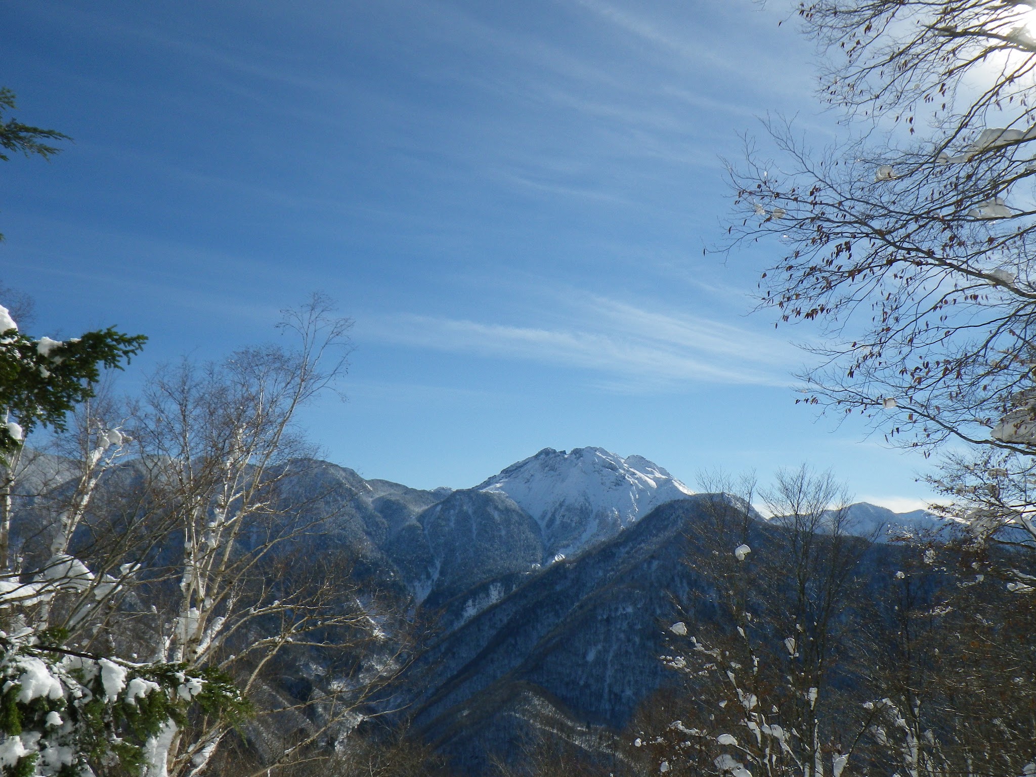 ほどなく、一般道に合流。槍見館に下ると、S峰登高会パーティーの皆とバッタリ会い、彼らは涸沢岳西尾根を2,100m地点で敗退してきたとのこと。一晩でテントが埋まったとのことで、やはりこの山域も飛騨側は降雪量が多いのだなと再確認した。(HT)