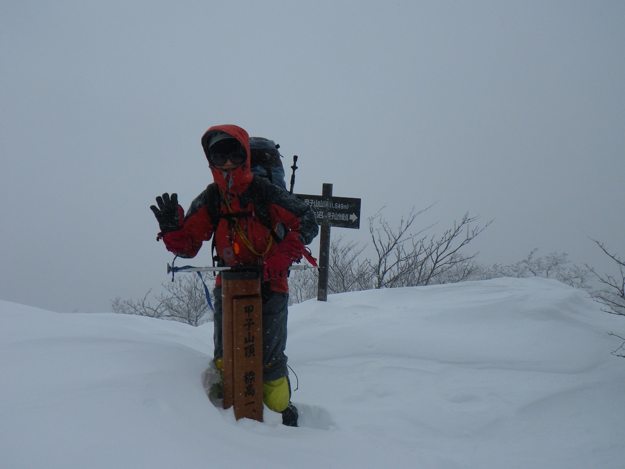 甲子山の山頂は2畳ほどで道標が出ていた。