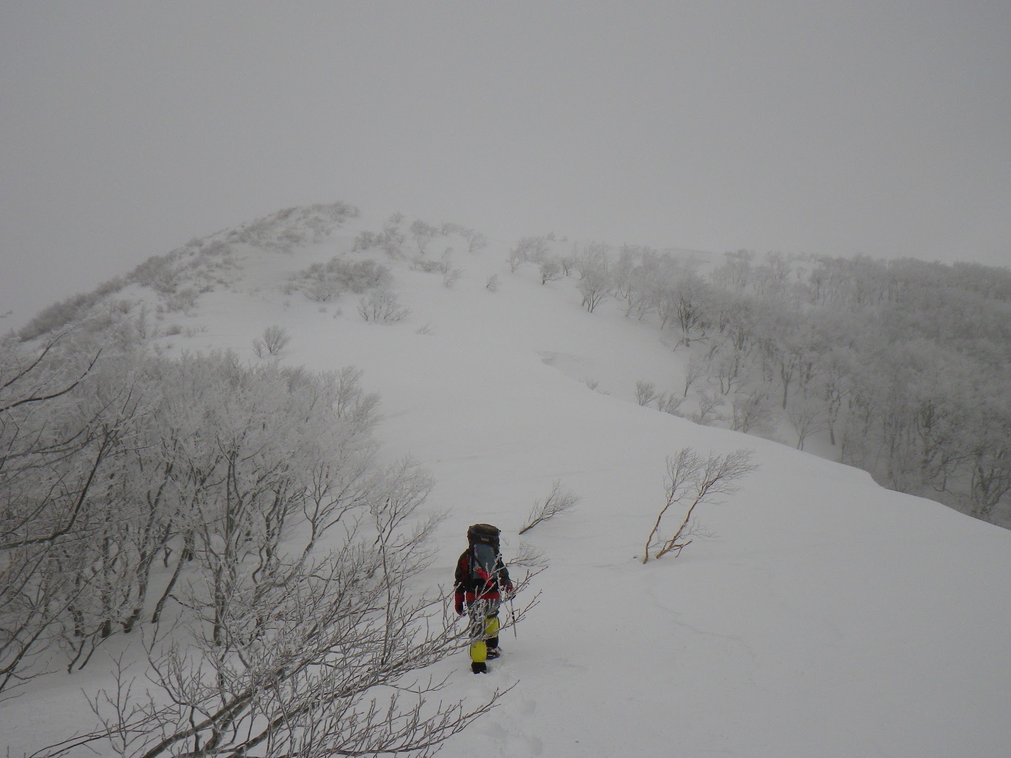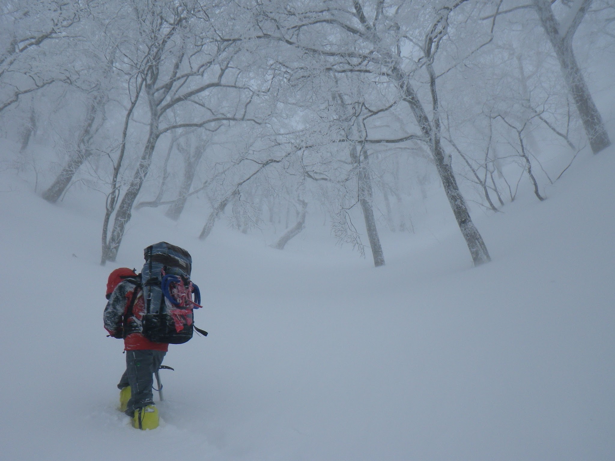 前日と同じく風雪強く、旭岳ピストンはあきらめ、来た道を戻る。