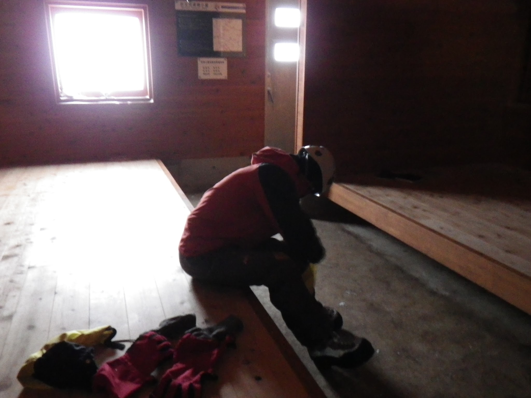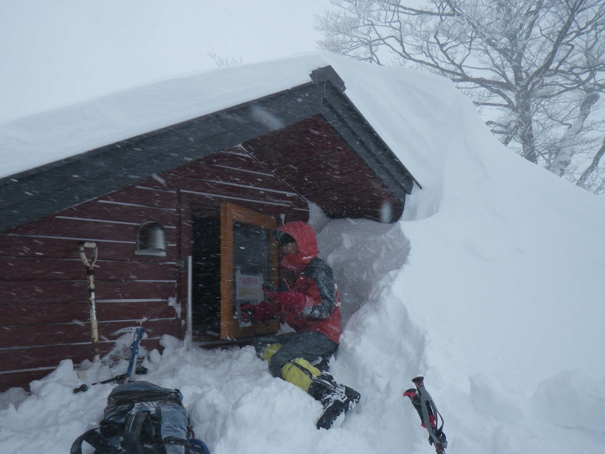 少々の雪かきで中に入れた。小屋はきれいで貸切。とてもあたたかく就寝。