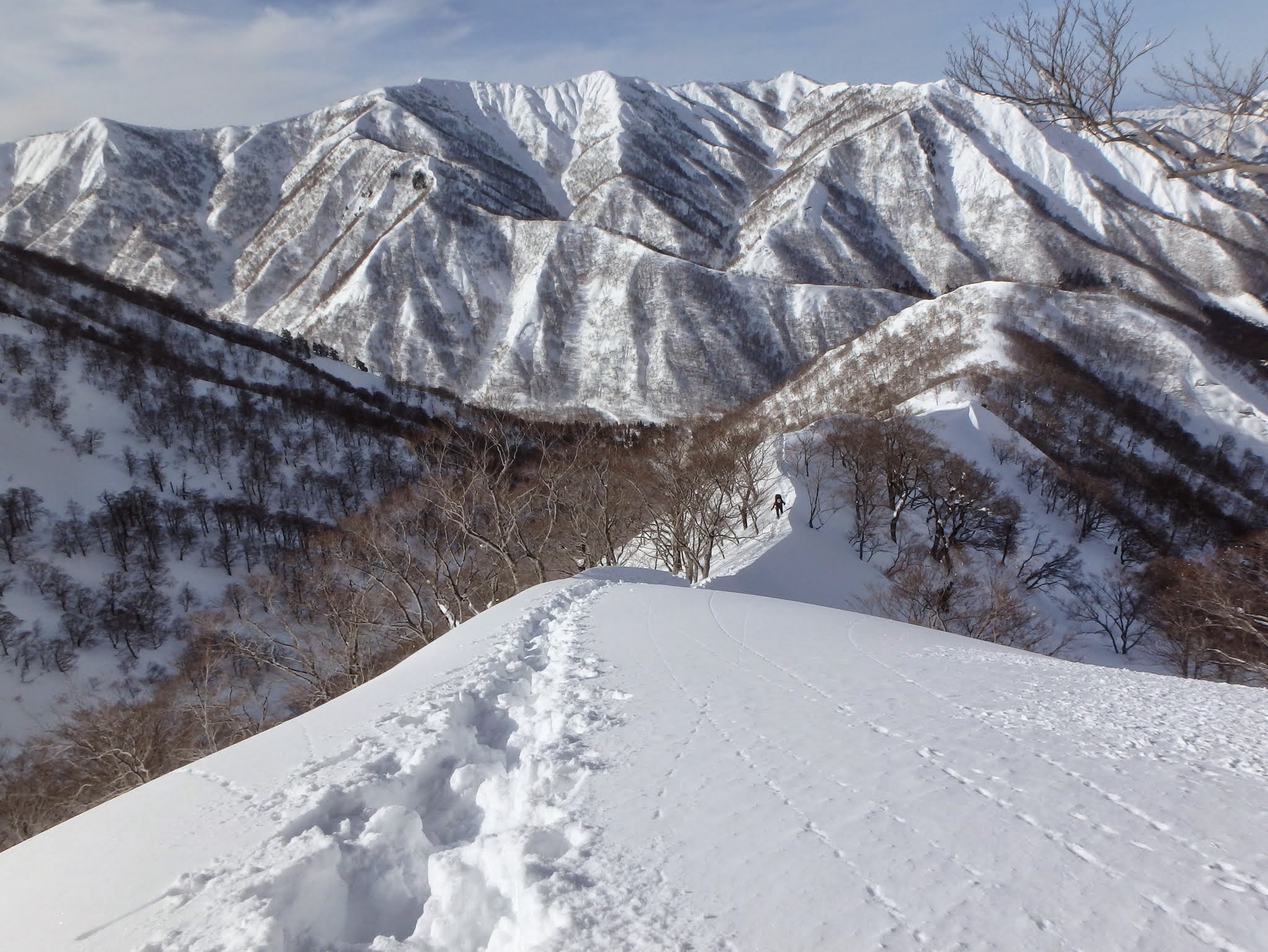 ルートも登頂こそなりませんでしたが、思いのほか急峻で表情に富んだ雪稜を味わえ、加えてこれでもかというほどラッセルをできたので非常に満足しております。
