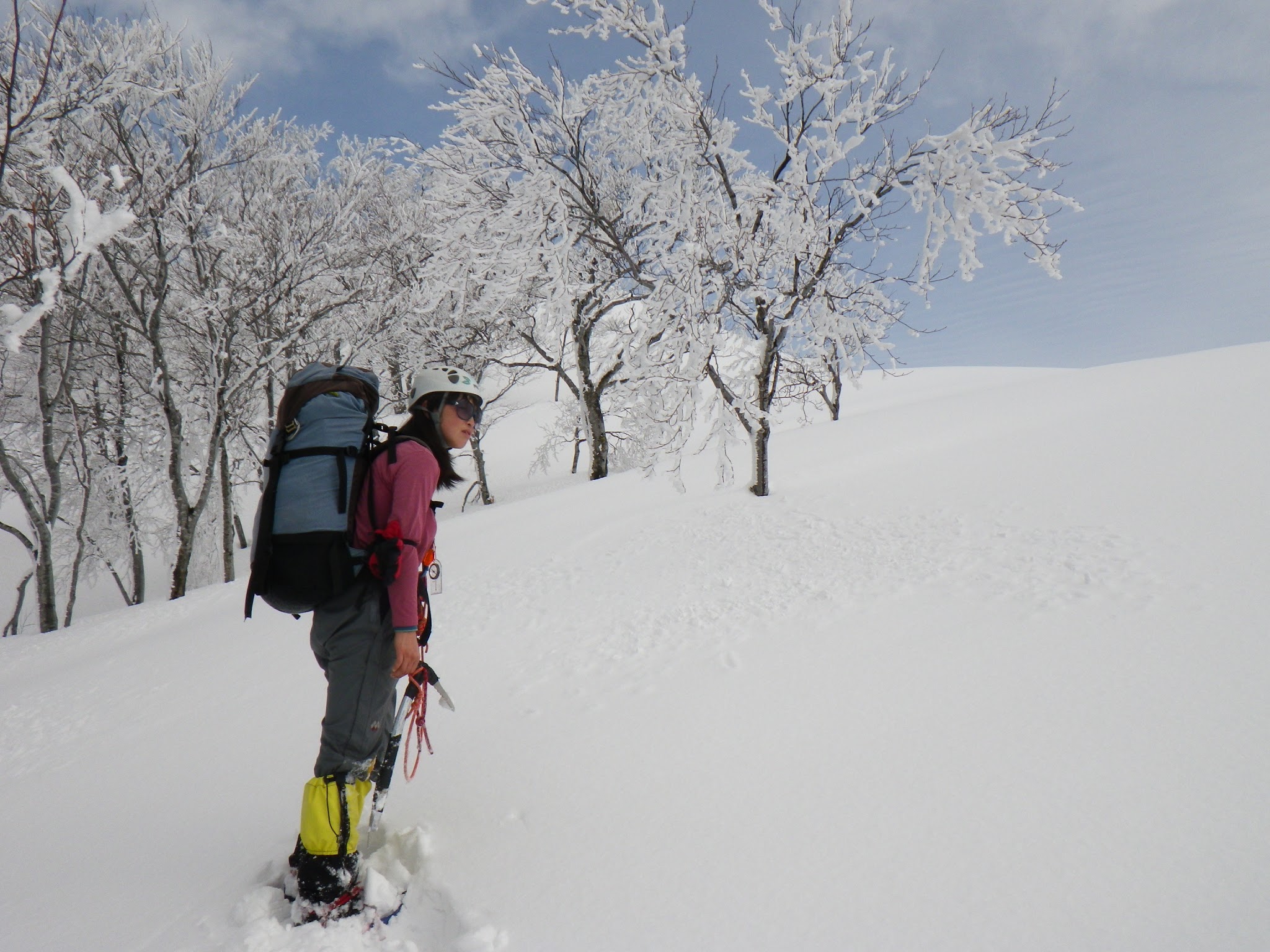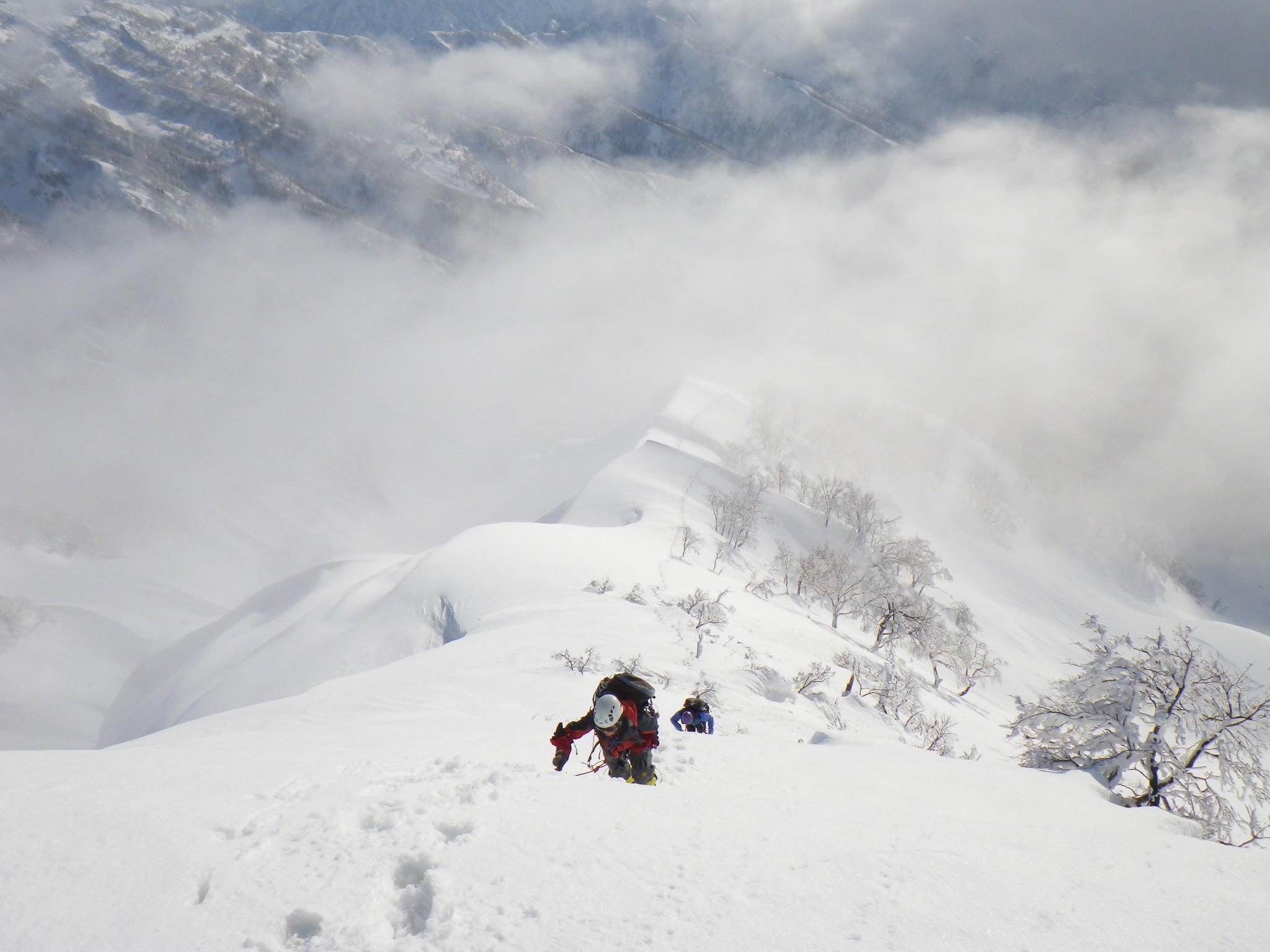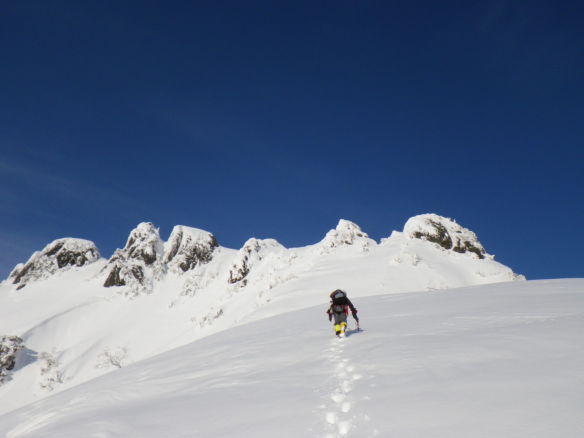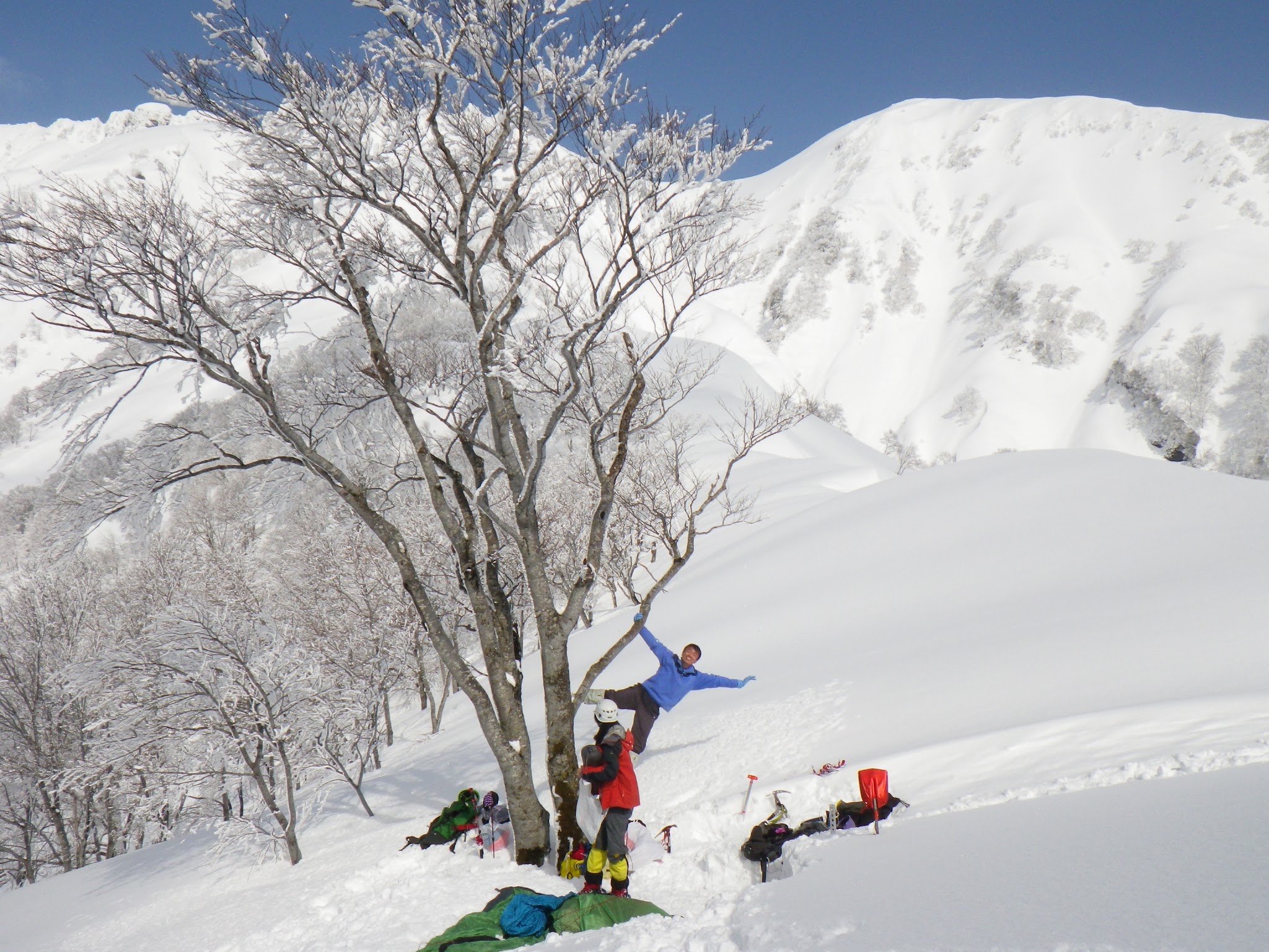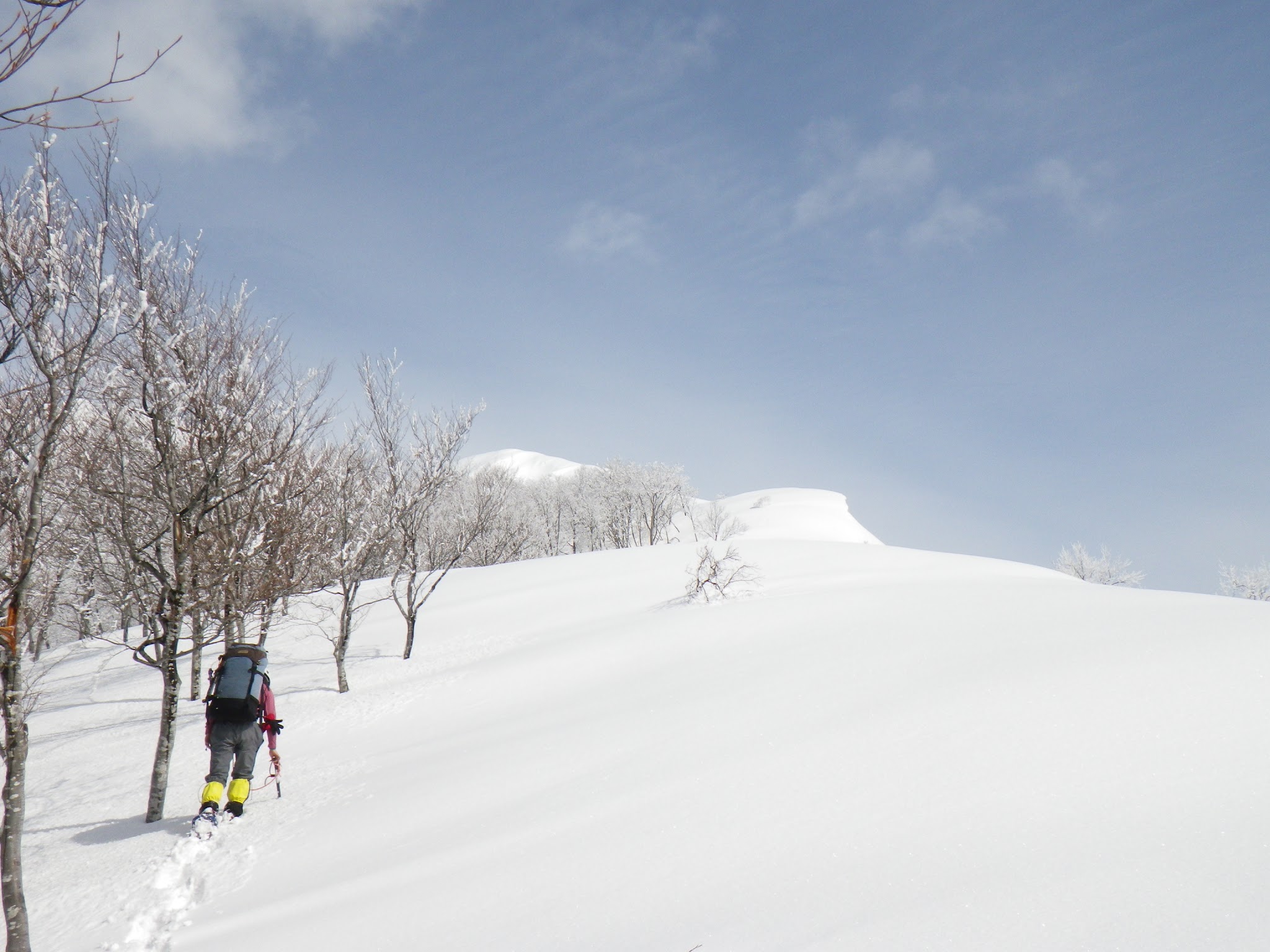 翌日が雨予報のため、1230mのコルに荷物をデポし、この日のうちに大日岳稜線までアタックすることに。