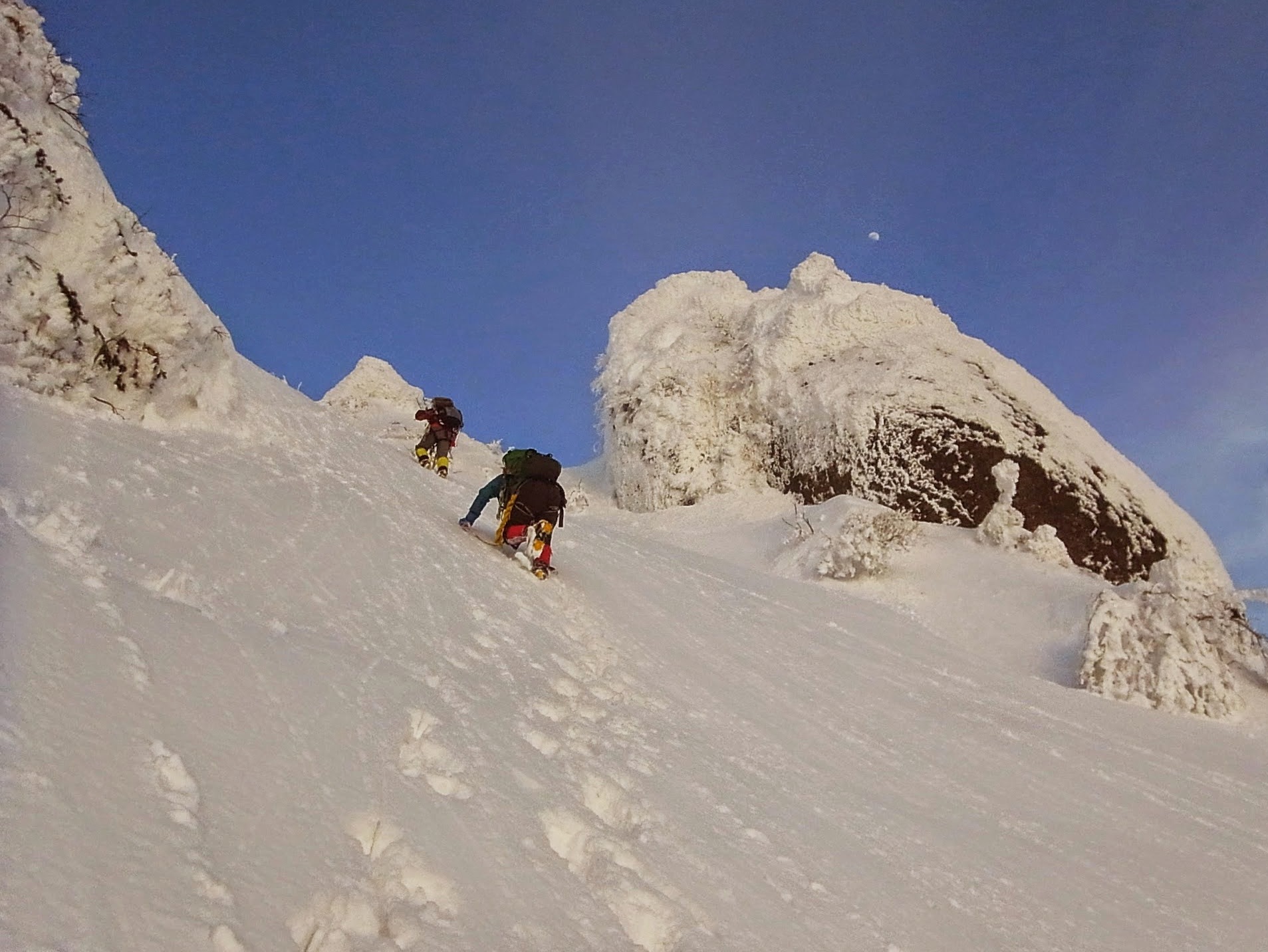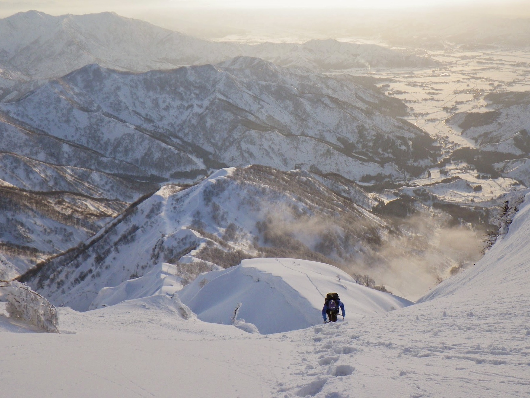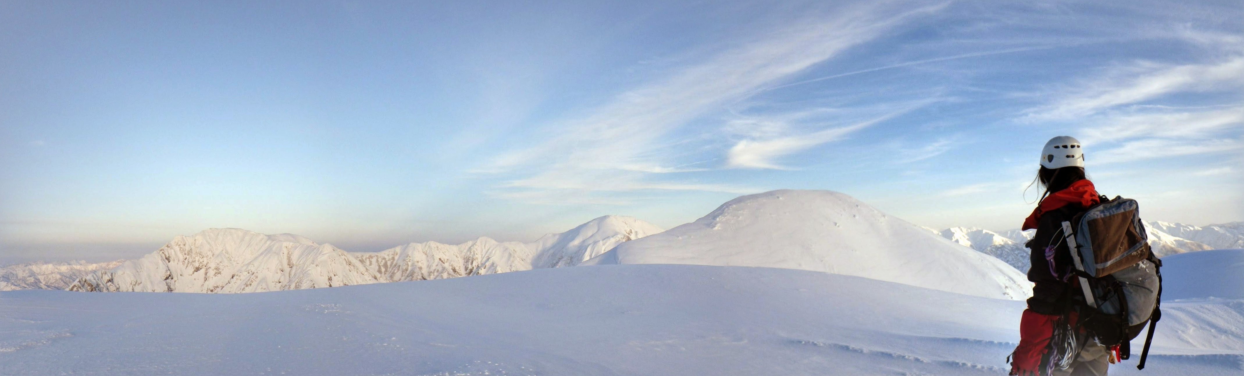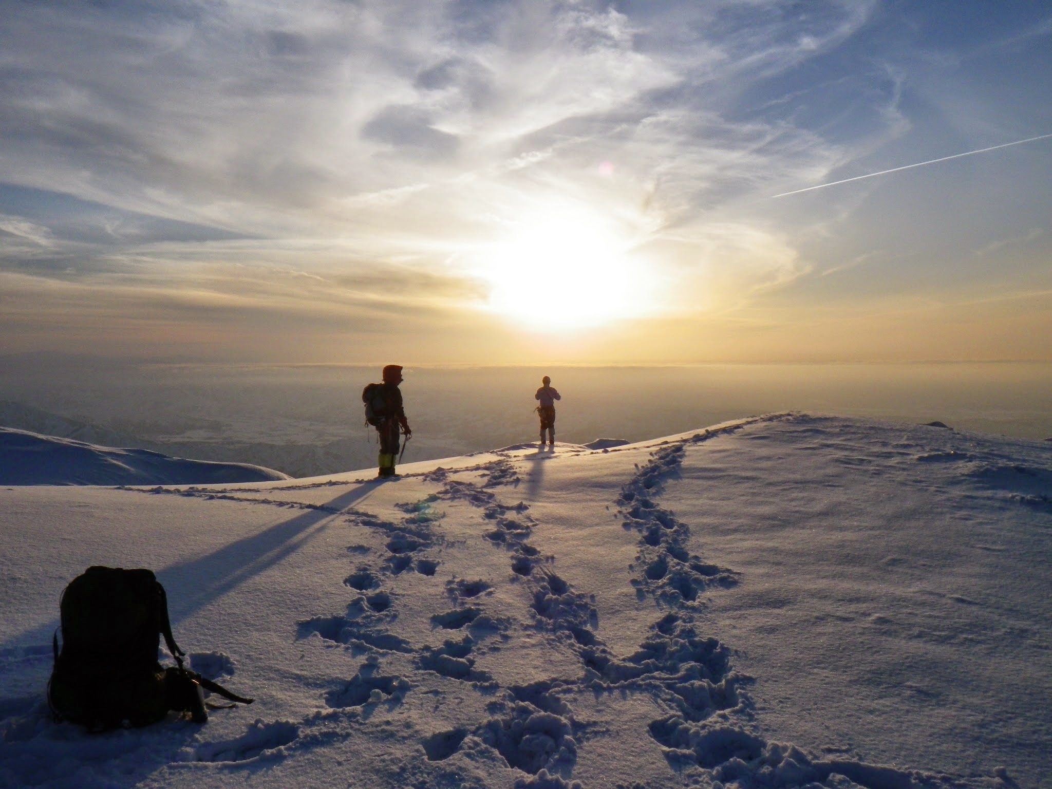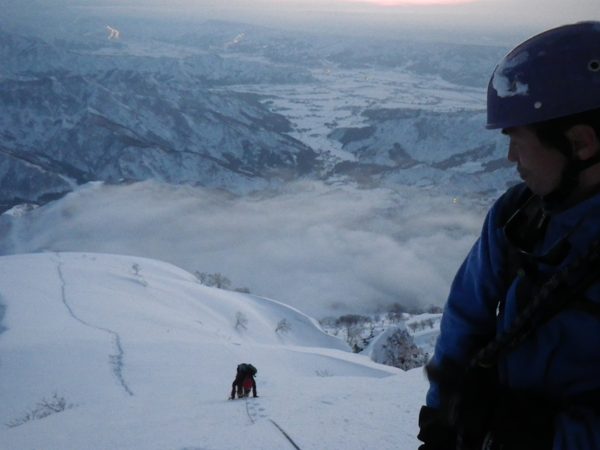 雄大な景色の中、夕日が沈むのを見ながらの登高は、なかなか圧巻でした。