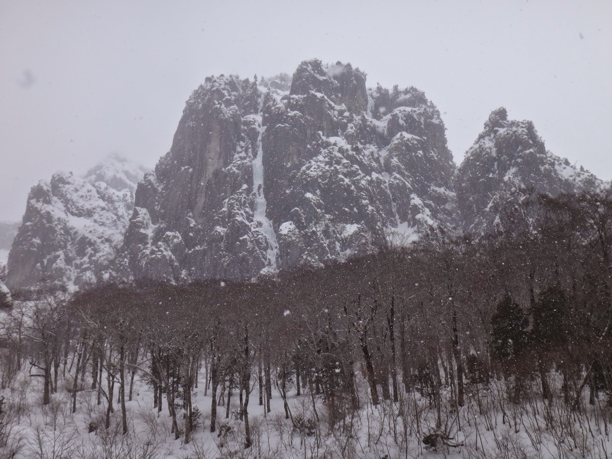 昨年、初めて訪れた前衛壁。チリ雪崩を纏い、垂直に聳える1ルンゼに一目惚れした。秋に偵察し、冬を待った。