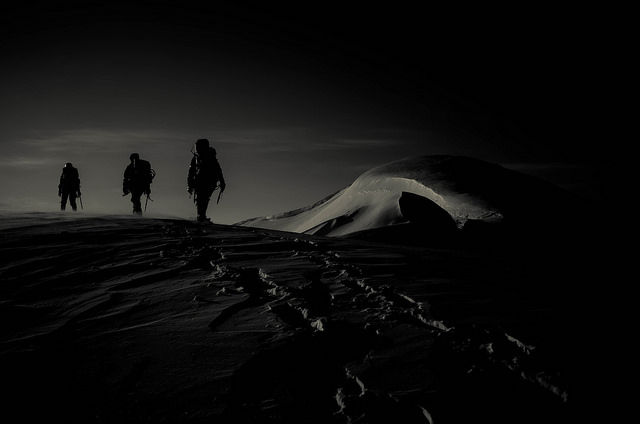 ナイフリッジの所も短く、雪質も安定していたのでロープなしで通過出来たからか?