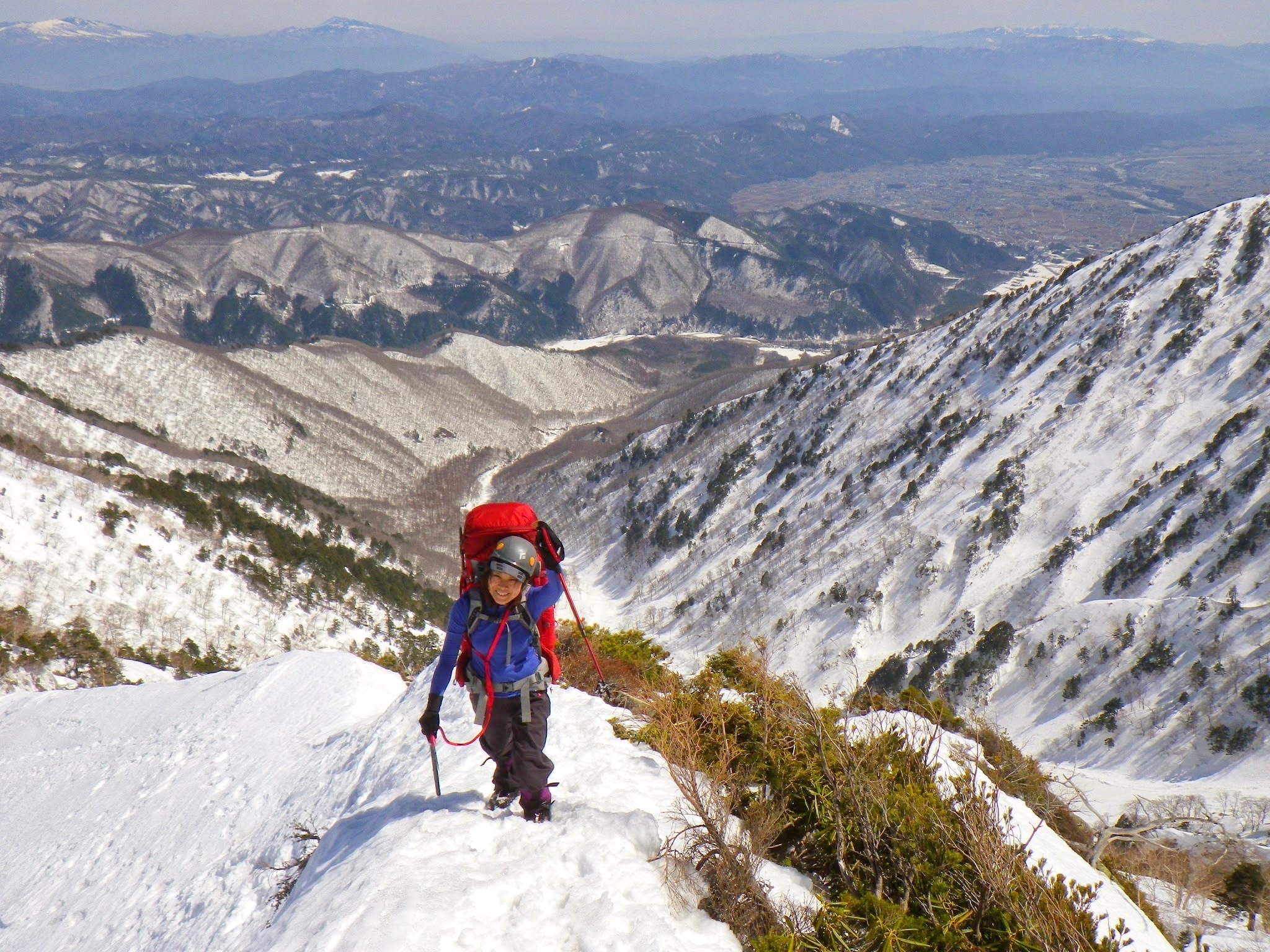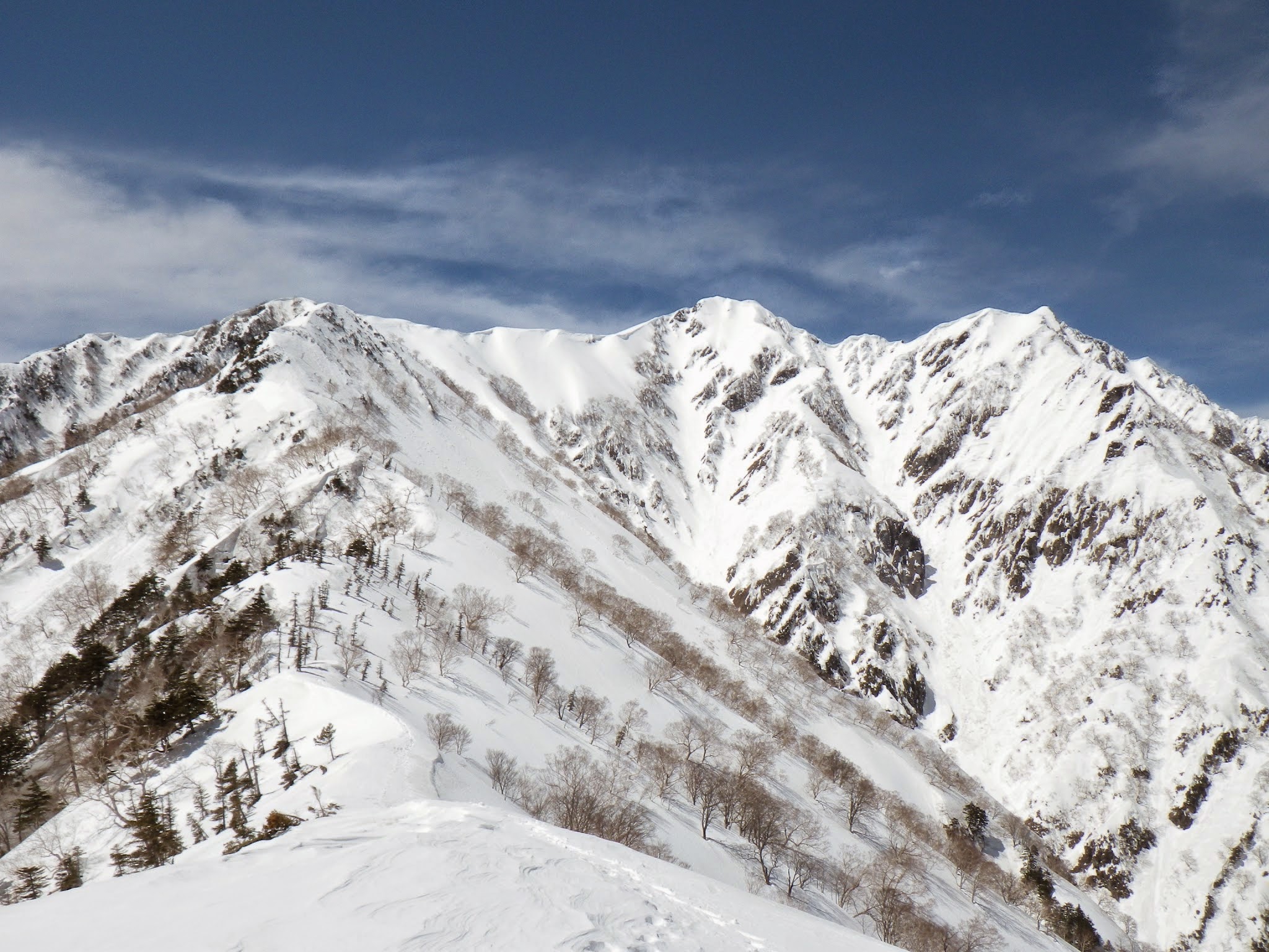 下部の急登は藪やぶを予想していたが、思ったよりも雪が残っていて、悪くない。ほぼ、雪の上を歩く