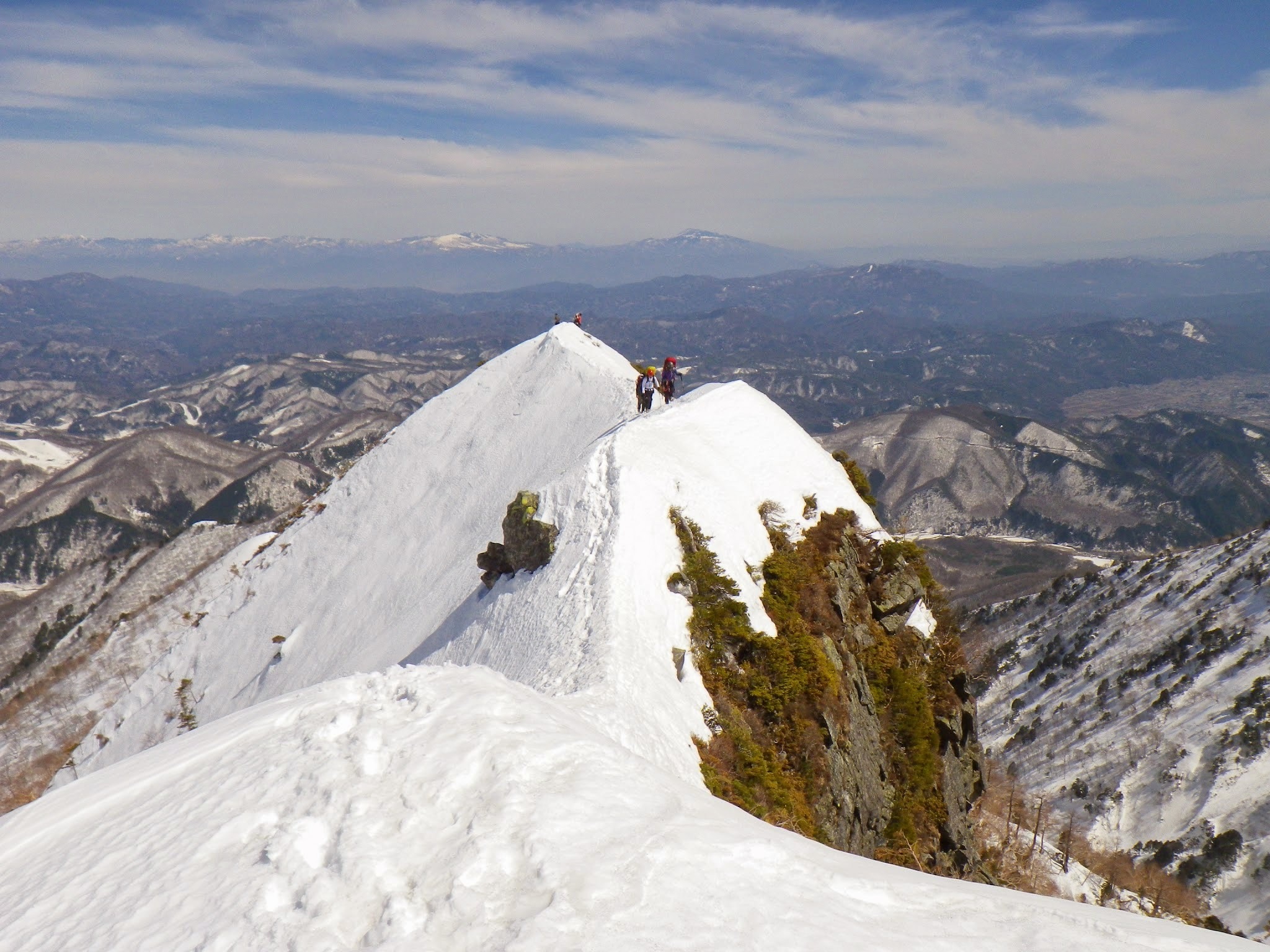山頂は、360度の絶景で、しばしみんなで堪能。剣、槍、八ヶ岳に富山、妙高など、どの方向を向いても綺麗なかっこいい雪山が見える。