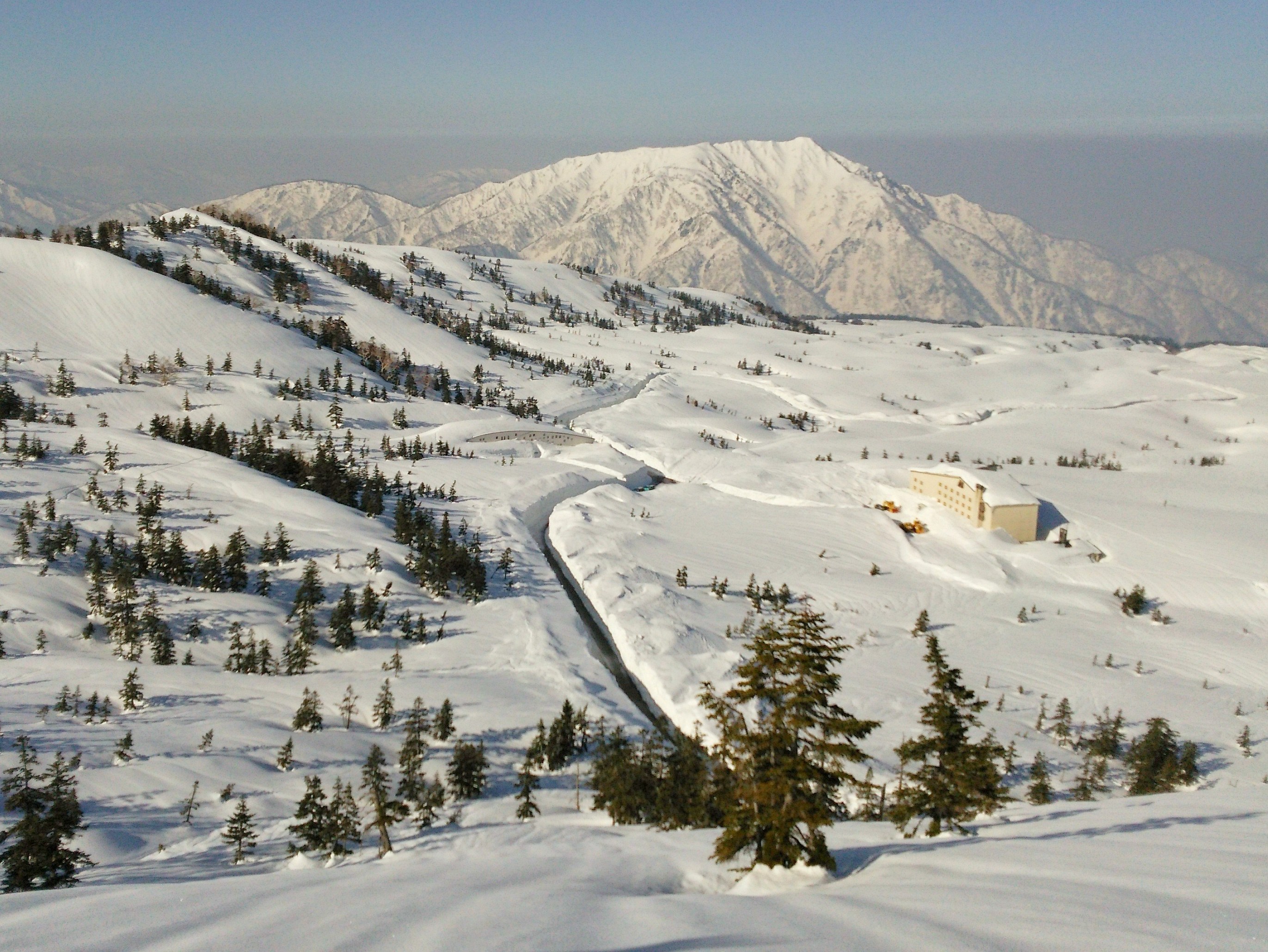 強風で寒い一ノ越から滑走。多少のアイスバーンをこなすとあとはまぁまぁいい雪、だが室堂へのトラバースルートなので残念。