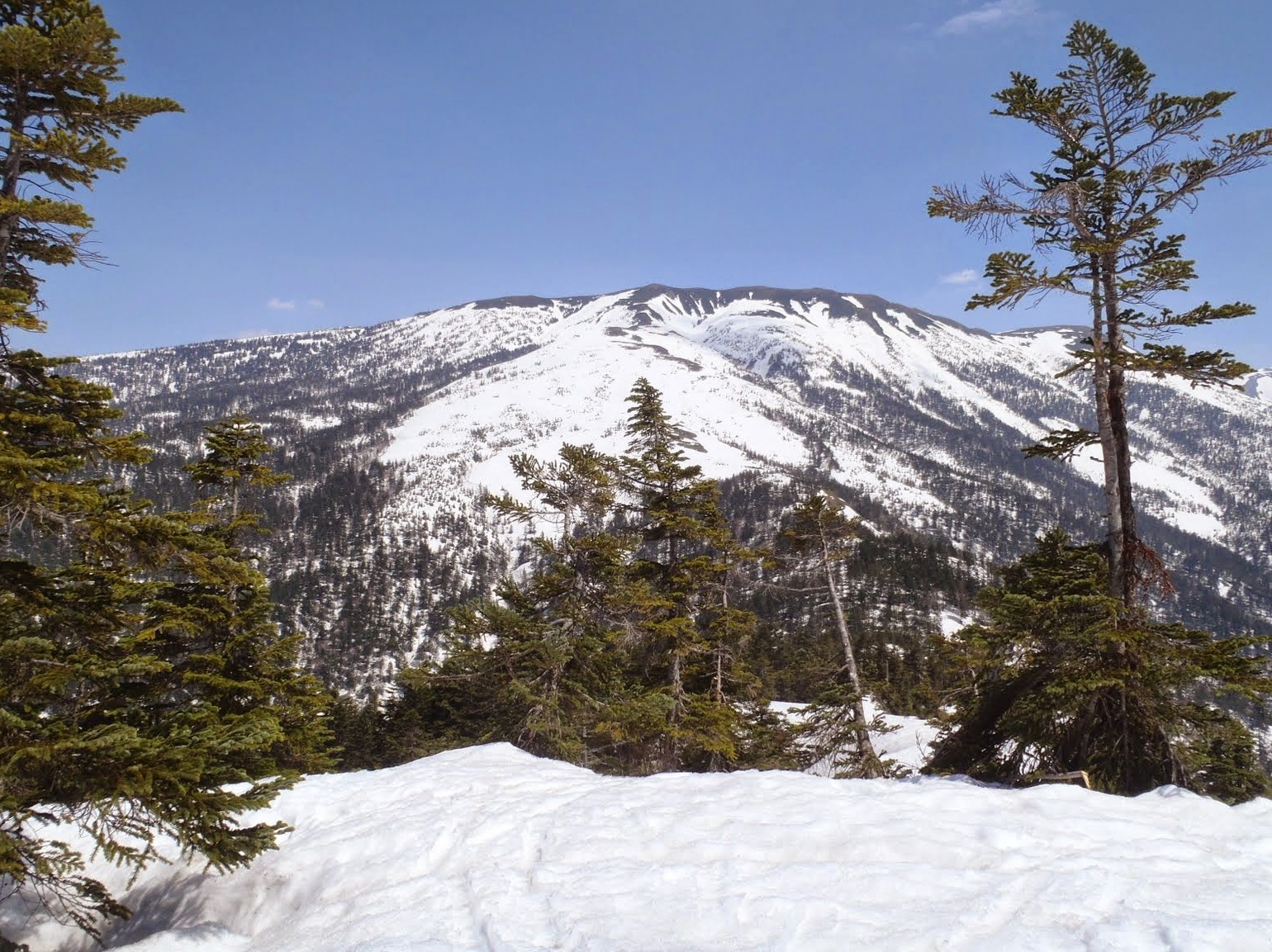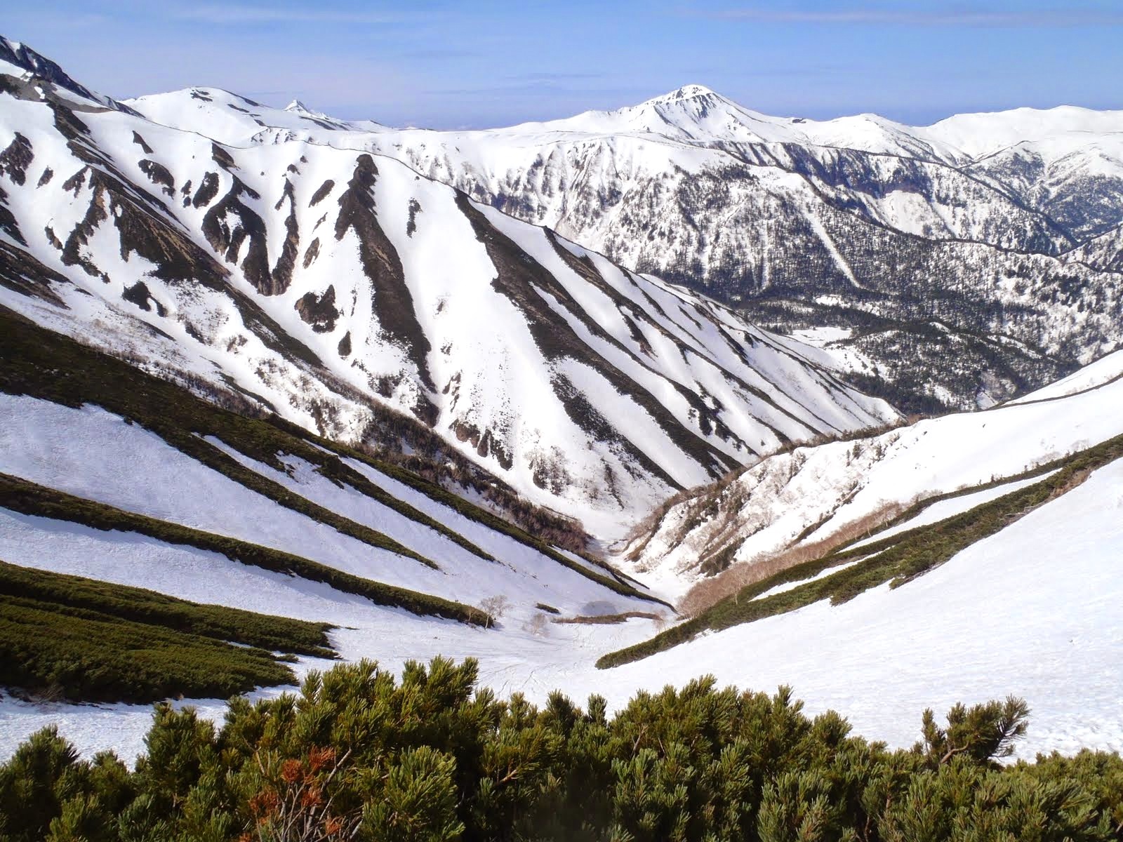 横断後にトラバースする夢の平までの山腹も雪が少なく、苦労しそう。総合的に判断し、「もっとコンディションが良さそうな年にまた来ればいいや」と考え、断念することにした。