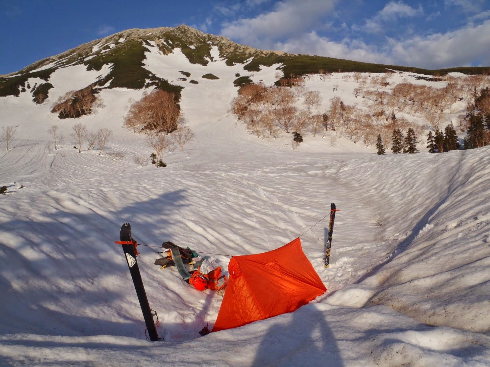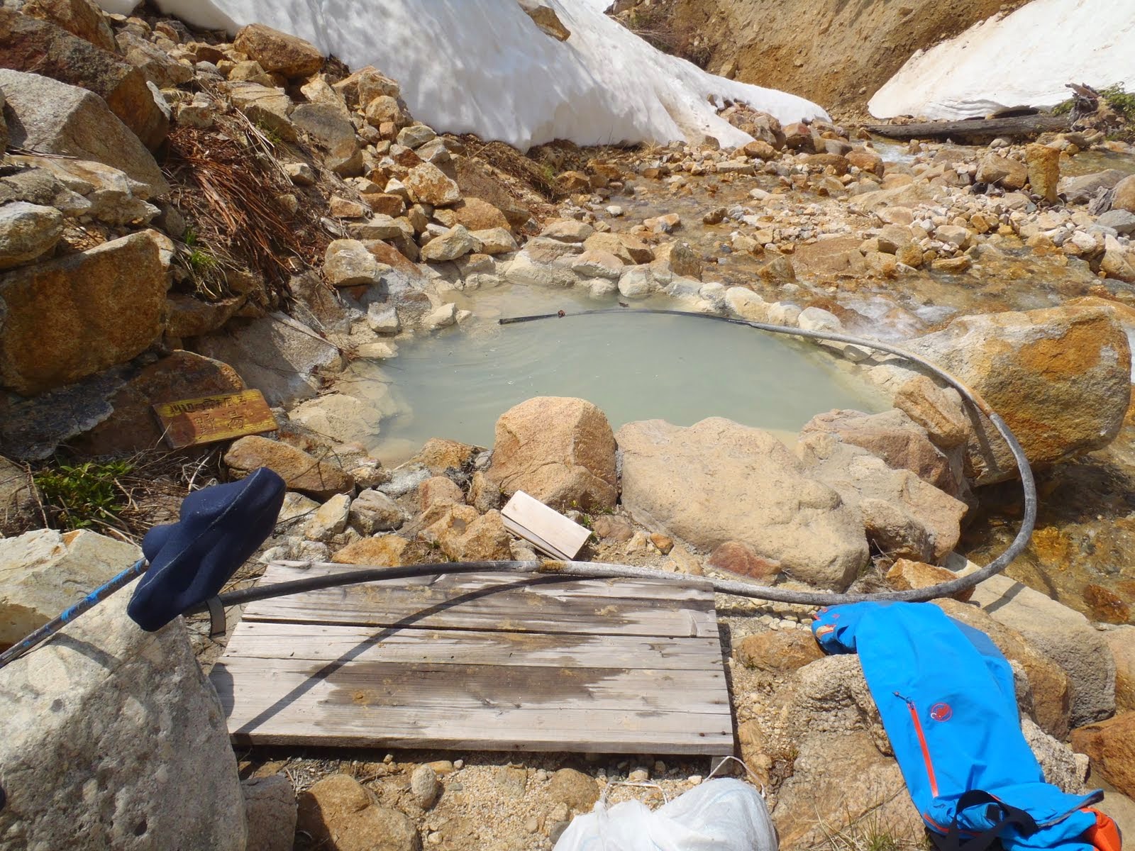 あとは丁度よく雪面が緩んだ温泉沢左俣をあっという間に下り、ツエルトを再設営後に寝るまでひたすら湯船に浸かる♪
