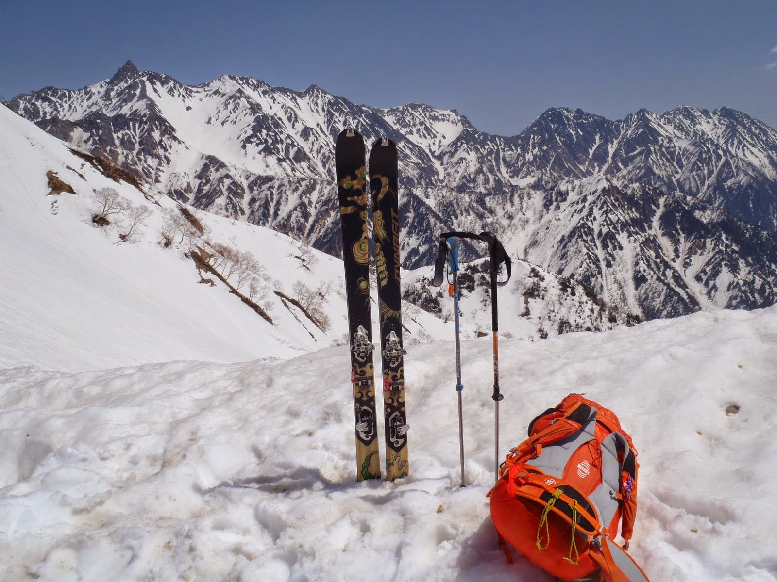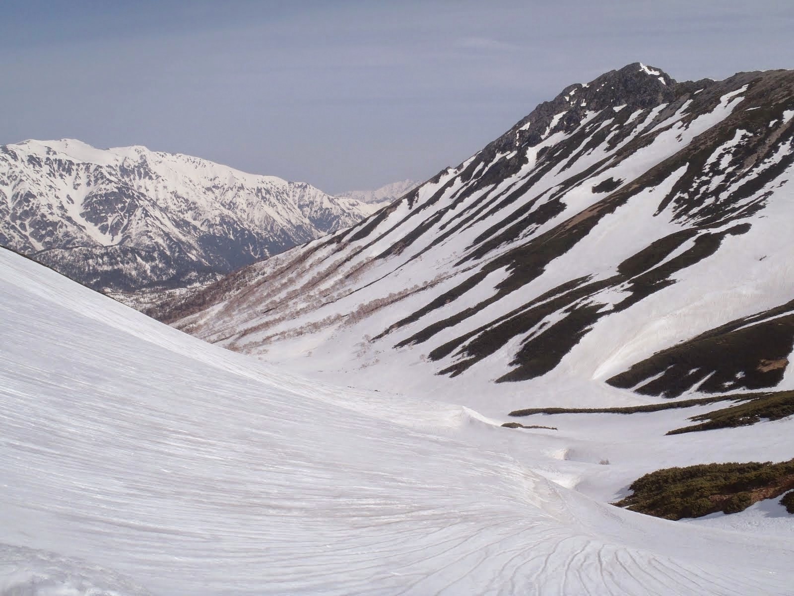 ツエルトの外でのんびり朝食後に出発。稜線沿いに三俣蓮華岳~双六岳まで歩き、双六谷左俣をひと滑り。双六谷は至る所で沢が出ており、寡雪ぶりに驚く。シールで大ノマ乗越に登り返すと、本日入山のM田さんがいた。今日は双六小屋泊まりという氏を見送った後、秩父小沢にエントリーする。