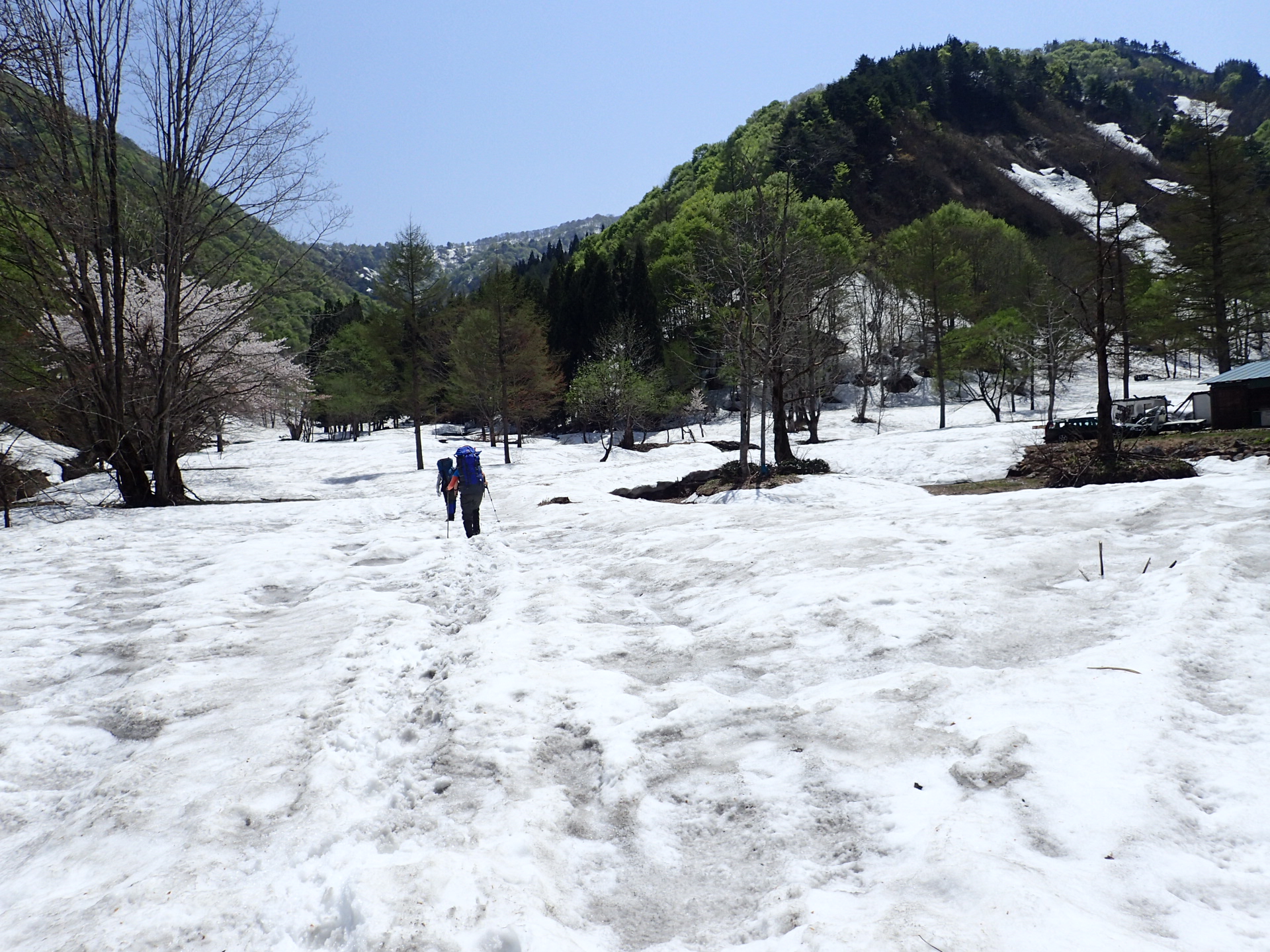 12時過ぎから歩き出す。赤倉沢出合のいわなの里は廃墟と化していた。