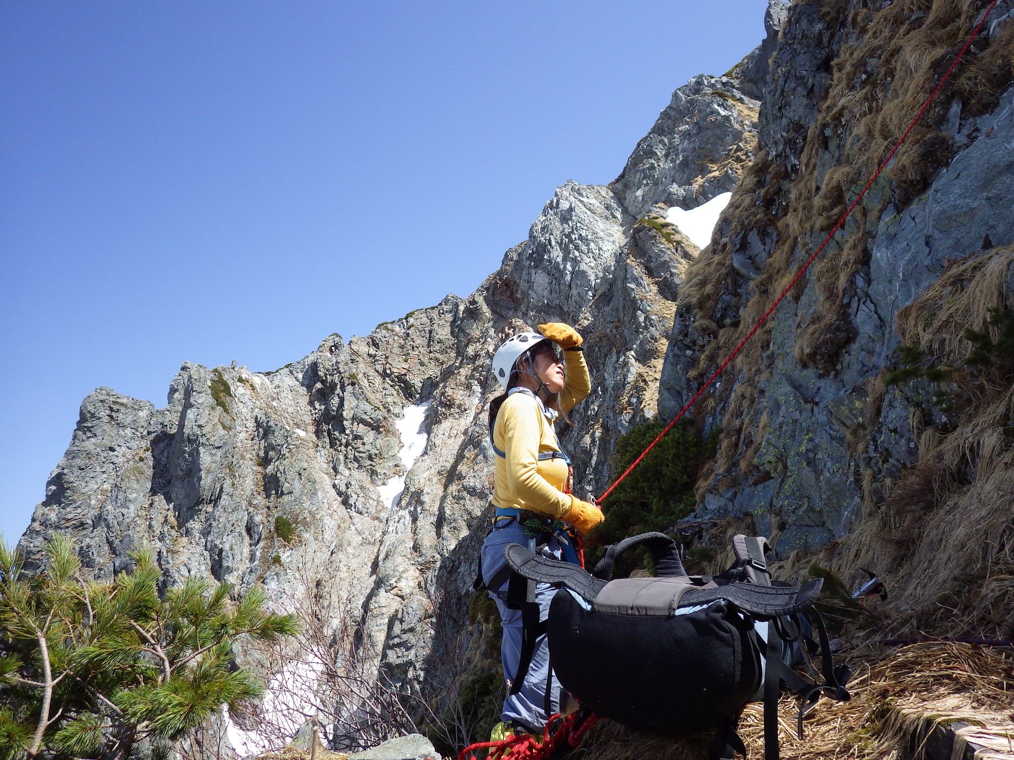 ◆メジャールートと違いルート取りに確信が持てない。最後まで気が抜けないルートを、それでもなんとかトップアウトするという緊張感を4人で共有して登った。2泊目はみな疲れぎみだったものの、無事予定のルートを下山できた。数十年間このルートに思いを寄せてきたというM中さん。また長年のザイルパートナー同士であるHTさん・OMさんの息の合ったやりとりを間近で見ることができた。とても充実した山行だった。(KM美)