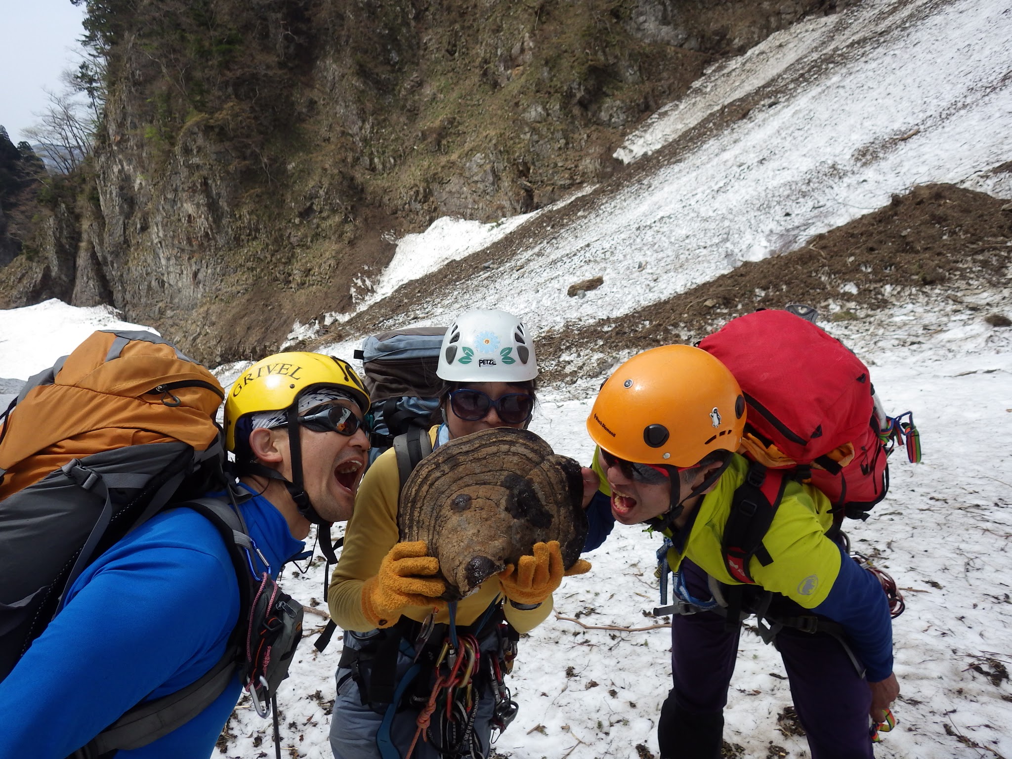 今回の東大谷は私にとっての4大登山の最後のひとつだ。でも、なぜ登りたいのだろう。わからない。ほかにもいろいろあるのに。登攀とも違うような気がする。当時感じた気持ちを確かめようとする思い出巡りのようなものか。それだけではないな。子供時代の山登りから、ぶなの会につながり、練習をして、そして巡りあった、気のおけない仲間を誘って念願の東大谷に入り、今の登山をすることが私にとって、とても大切なことなんだろう。充実しました。メンバーのみならず会員の皆さんにも感謝します。(M中)