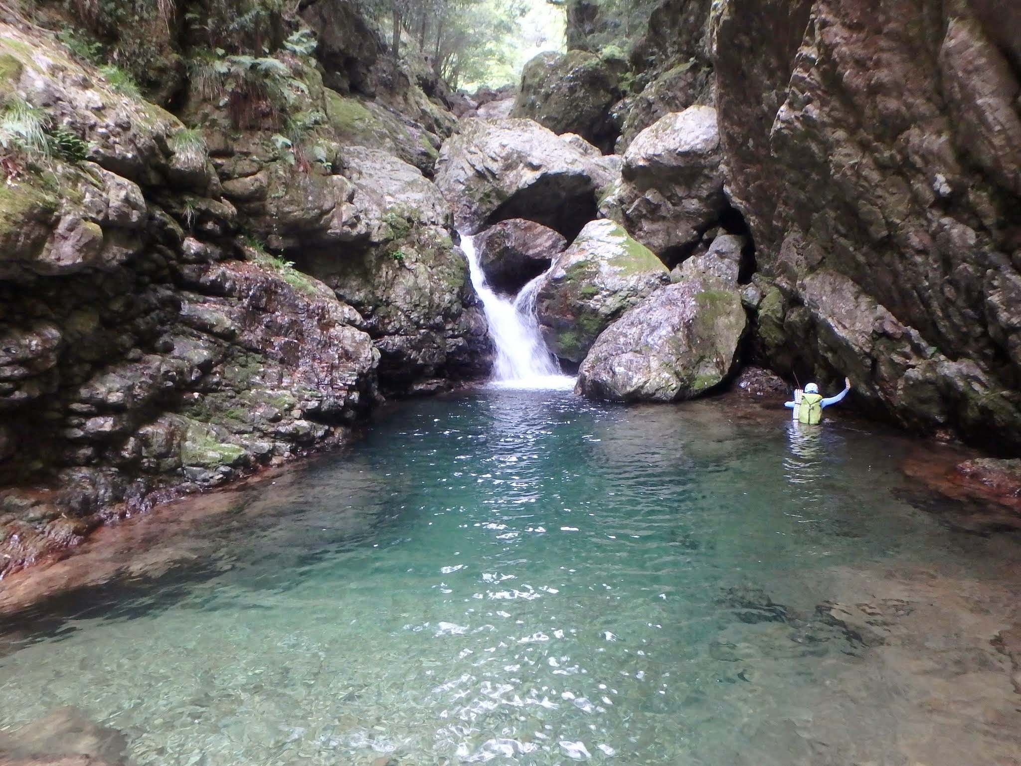 釣り師が多いためか入渓直後は小滝にFIXがベタ張りされていたりするが、その後は特に人工物もなく快適な沢登り。