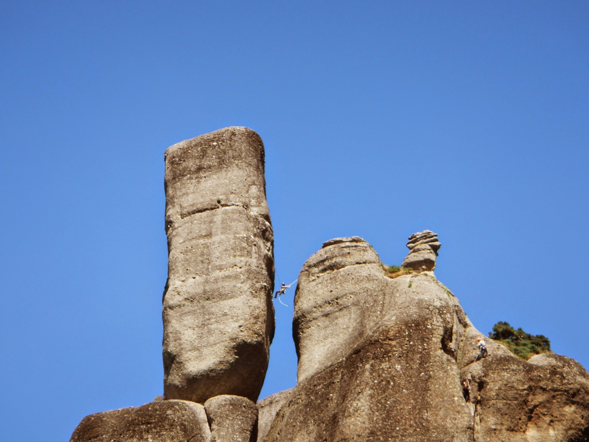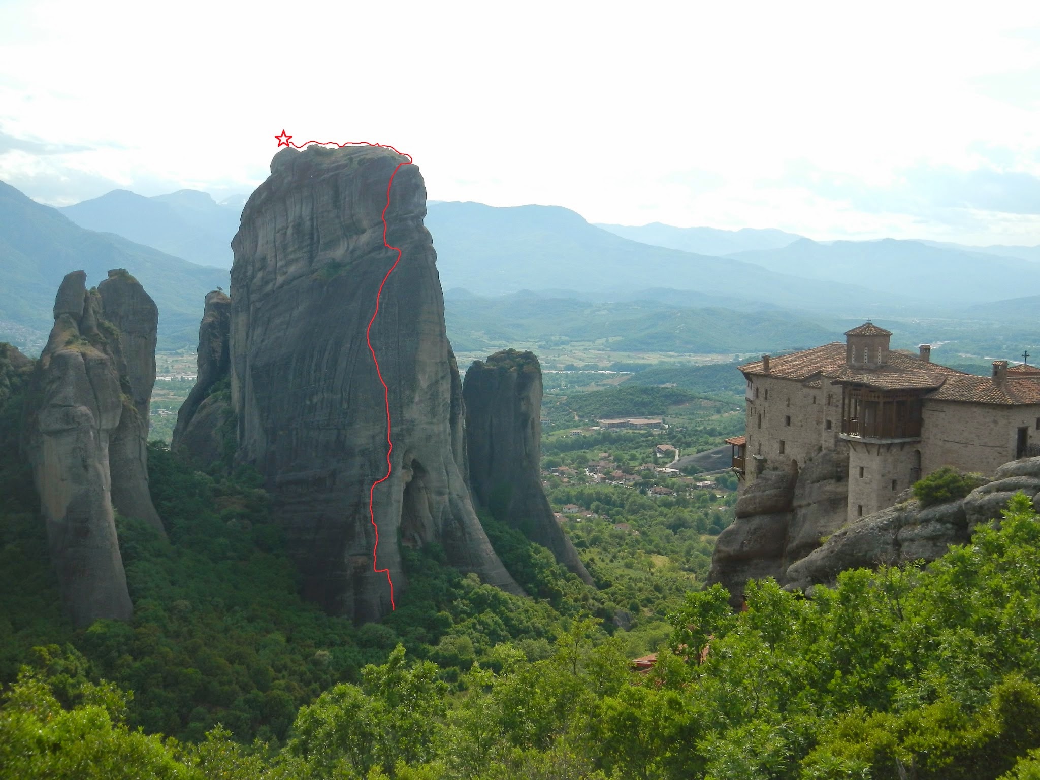 現時点では登攀が可能ですが、今後はどうなるかわかりません。「興味のある人は早くおいでー。」と、トポに記載されています。確かに世界遺産!更にギリシャ正教の聖地!そこでこんなことが許されているなんて、ギリシャ人のオオラカさには頭が下がります。観光で行くだけでも物凄く良い所ですが、クライミングで行くと更に良いと思います。奇岩群が結構標高が高いので、マルチピッチがオススメです。