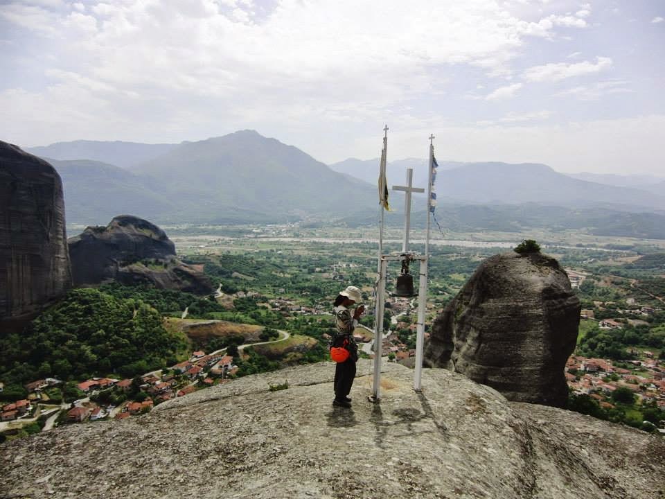 この岩峰(ホーリー・ゴースト)には修道院の廃墟もあり、アプローチとデプローチも面白かったです。取り付きに監獄の跡があり、下降途中には洞穴に教会。小ピークに十字架、岩の到るところに信仰を感じました。私にとっては、これがメテオラで一番楽しいルートでした。今の私の実力で、これ以上のルートはないでしょう。大満足です。ということで、心がイッパイになりましたので、これにてメテオラ・クライミングはおしまいと致しました。