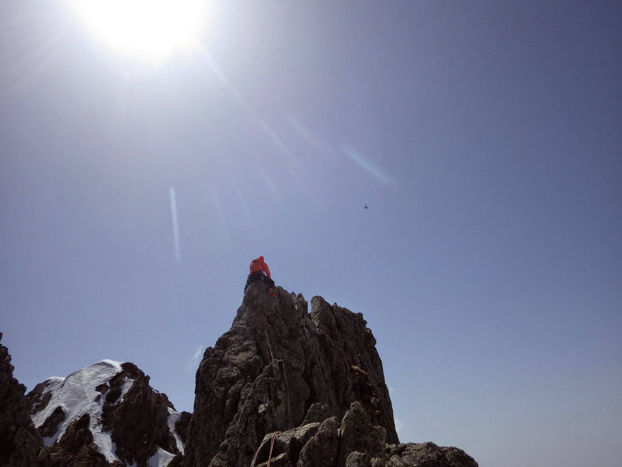 前回は霧中で景色無し。今日は高度感抜群。リッジ通しに進み、14時終了。