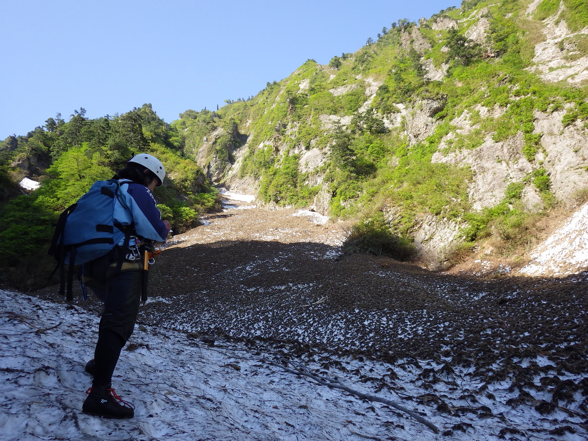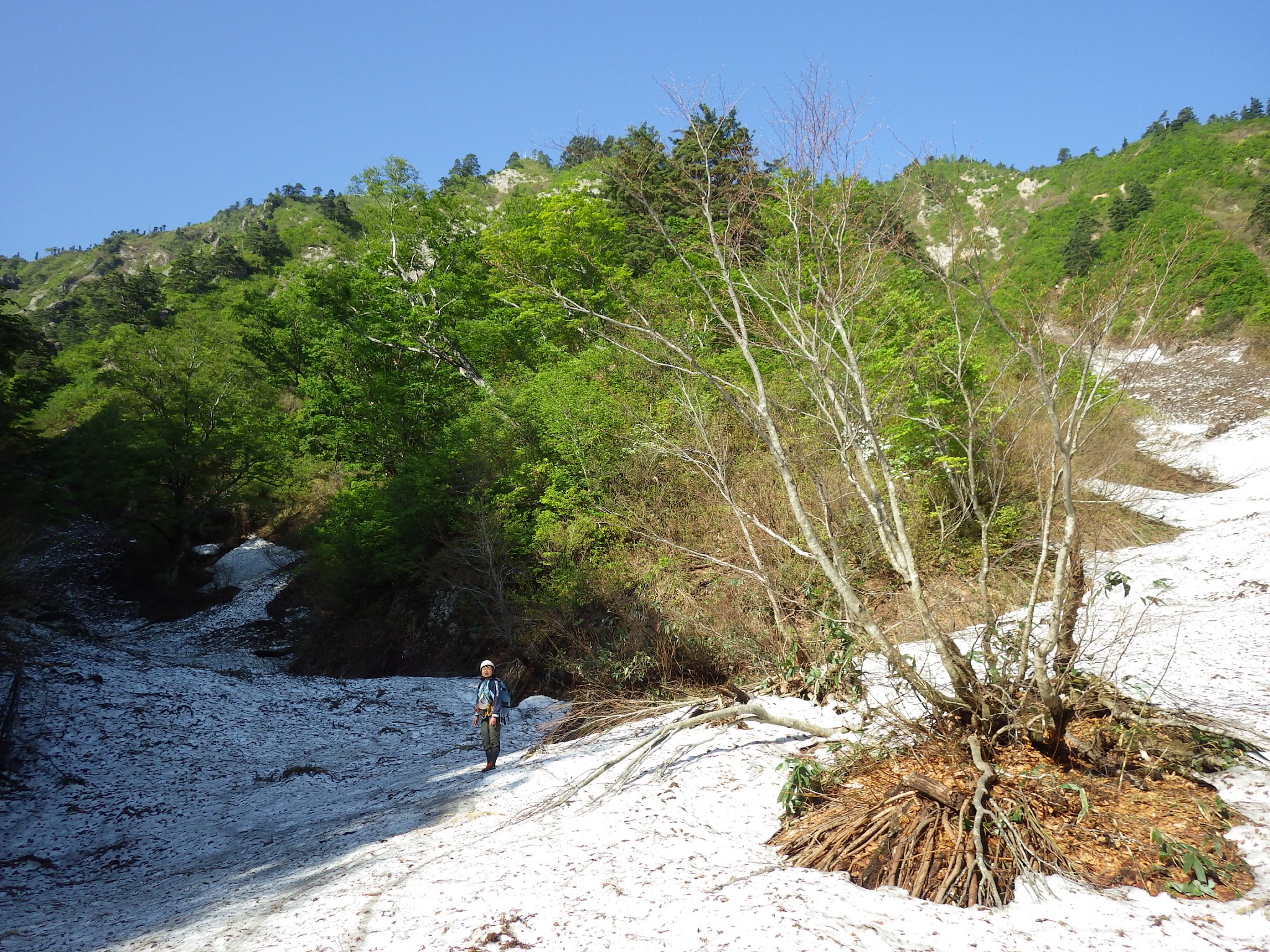 雪渓アプローチができる時期の足拍子川左岸スラブ、足慣らしにも丁度良い山行となりました