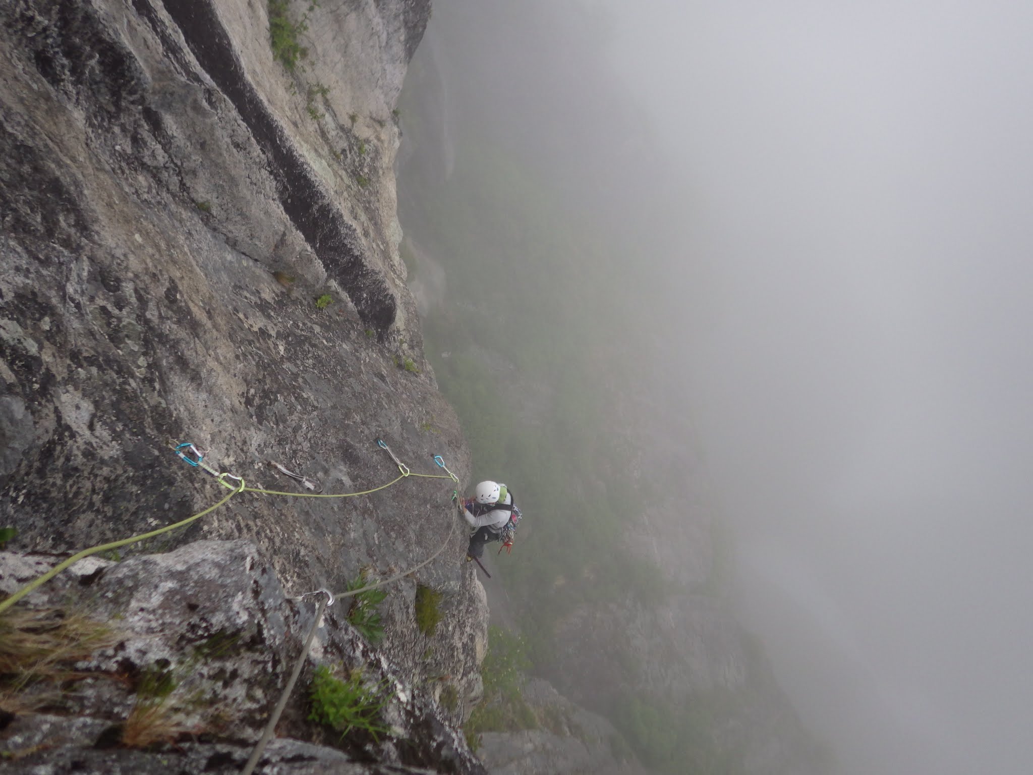 2015.06.22丸山東壁 緑ルート 2015/6/20-21 アルパイン(夏) Post Share Line RSS note この記事のタイトルとURLをコピーする 【メンバー】NA(リーダー)、NK 【行動記録】6/20(土) 晴れ~雨07:30 トロリーバス扇沢発−07:46 黒部ダム着−09:00 内蔵助沢出合着(テント設営)09:30 内蔵助沢出合発−10:10 丸山東壁緑ルート取付−10:30 登攀開始−14:30 中央バンド(休憩)−15:00 バンド端のテラス−17:00 大ハングの上の終了点で登攀終了−18:30 同ルートの懸垂で取付に戻る−20:00 内蔵助沢出合(テント泊) 6/21(日) 雨07:00 内蔵助沢出合発−08:30 黒部ダム着 (NA) 会越 室谷川 大久蔵沢(中退) 2015/6/20前の記事 「ぶなの沢ヤであるために〜」 渡渉・救助訓練@奥多摩 2015/6/27-28次の記事