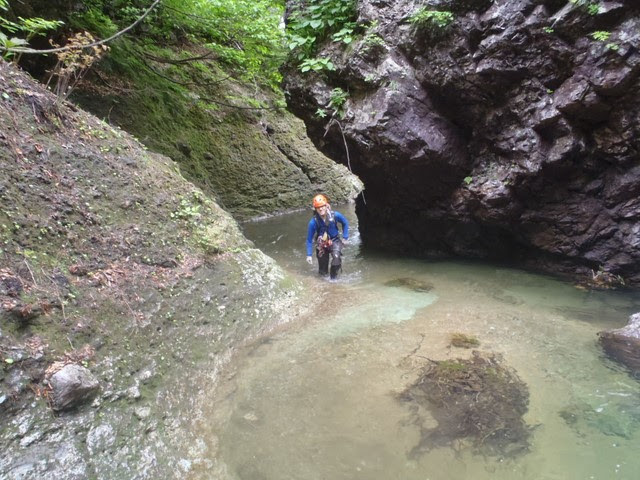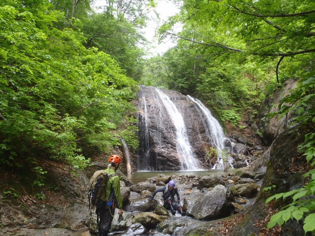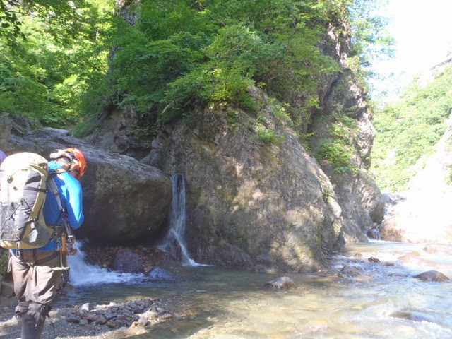 06:00木淵沢橋駐車~07:00-07:15岩菅橋準備~07:30ヒグラ沢出合~8:30ムササビの滝巻き~9:00巻き終わり~10:30釣り~11:20下部ゴルジュ最後の連瀑巻き~12:00下部ゴルジュ終了~13:00″770m”テンバ
