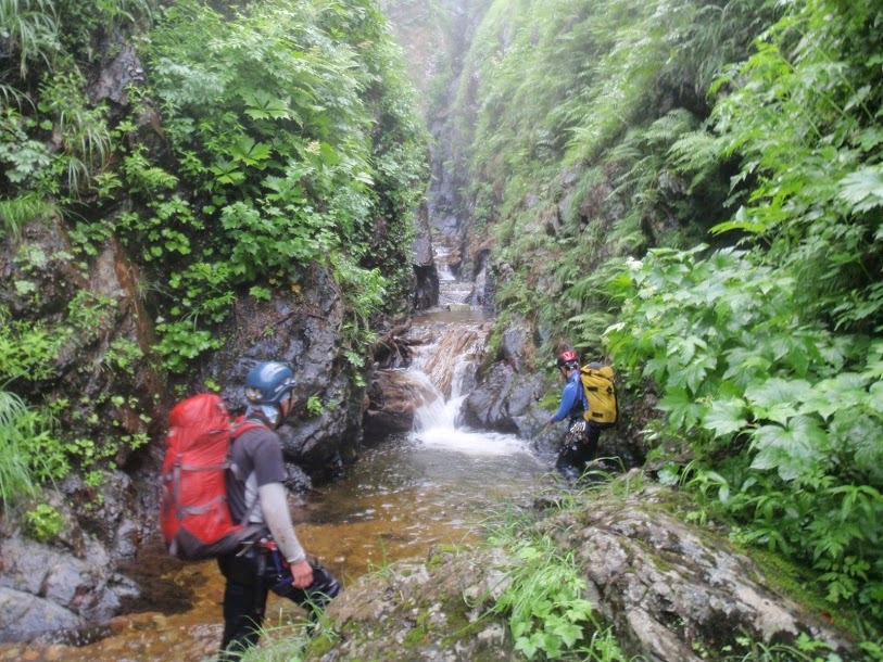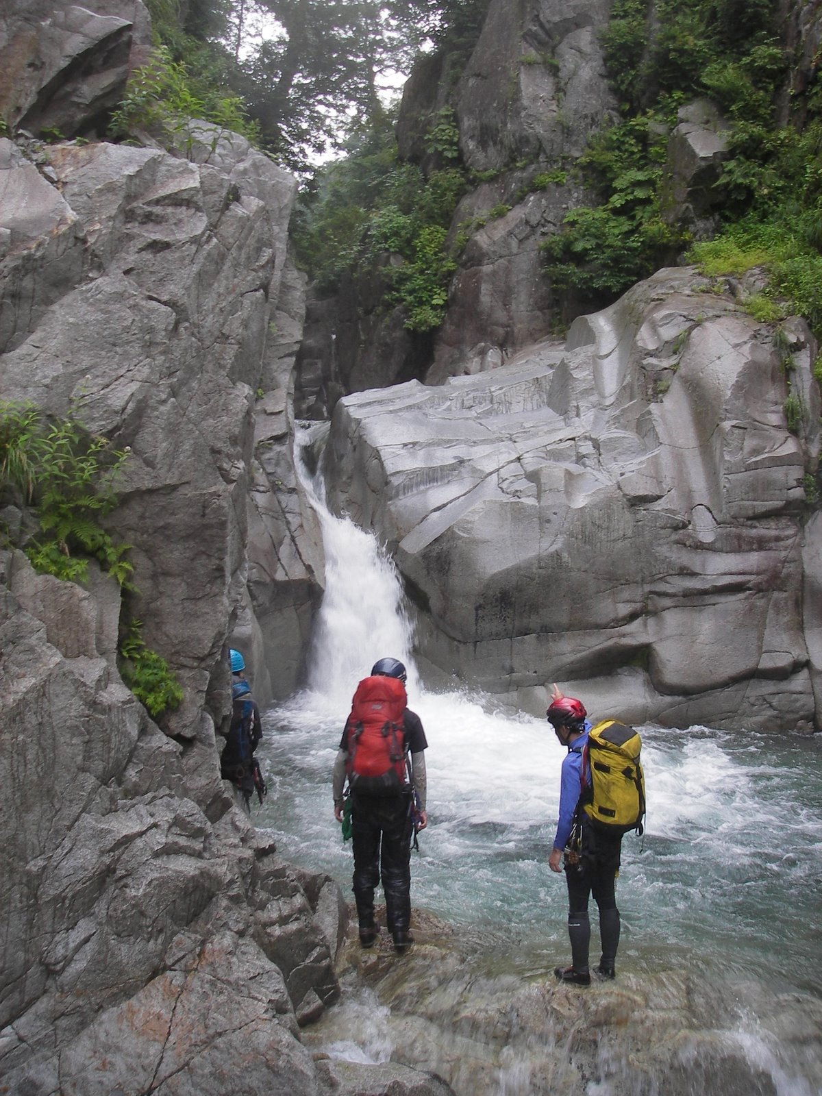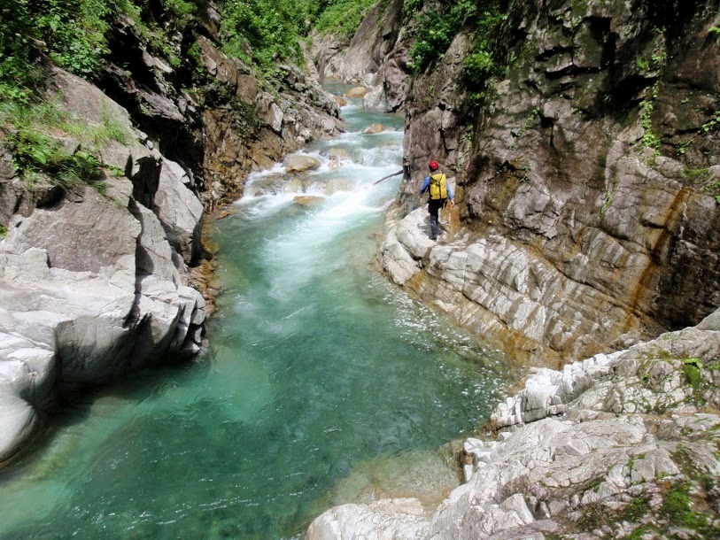 その後も、緊張感のあるゴルジュ突破が続き、ザイルを多用しながら慎重に進む。