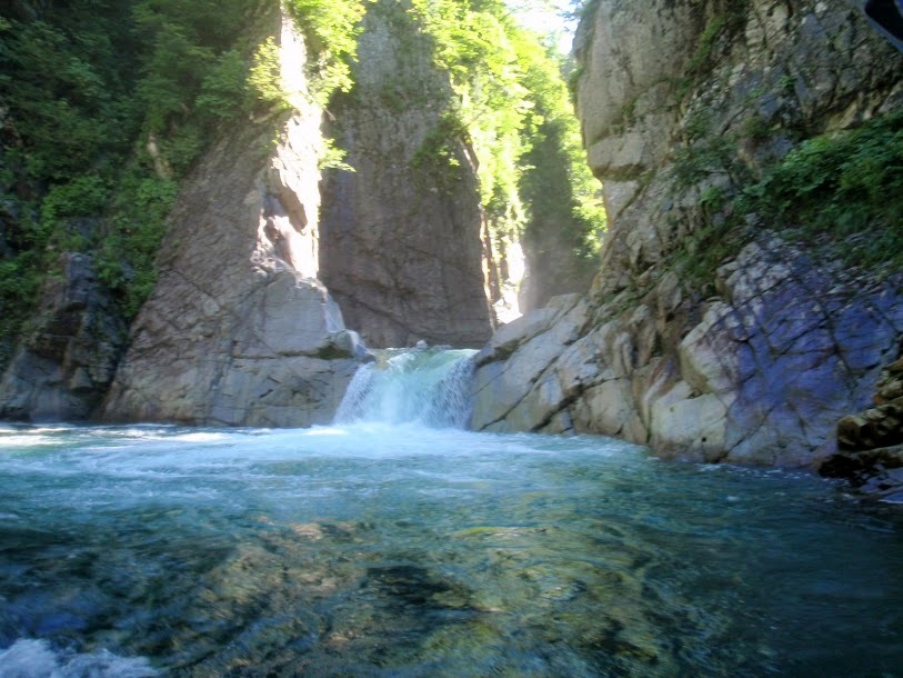 まずは軽く山越えして、沢を下って北又谷に入る。水量は平水よりやや大目らしいとのことだが、そもそもこんな水量の多い沢を遡行すること自体始めてである。