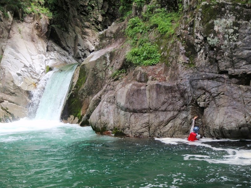この辺も流されたら一気に下流へ押し戻されるので、終始緊張感の伴う遡行だったが、厳しさの中の楽しさがなんとも心地よい。