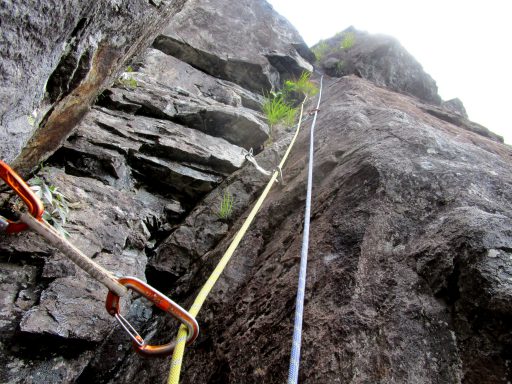 まだまだ「安全」と「スピード」の兼ね合いが難しく、アルパインヌンチャクをそのまま使うか伸ばして使うかということもとても迷ってしまう。A山さんの中間支点の写真を撮りまくったので、それを見ておさらいしようと思います。