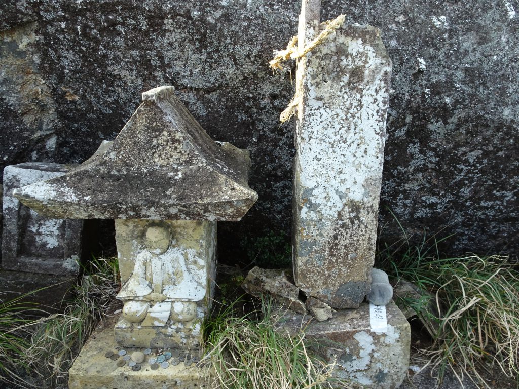 そこに車を停め、西方向へ歩くと、石垣、20cm高の