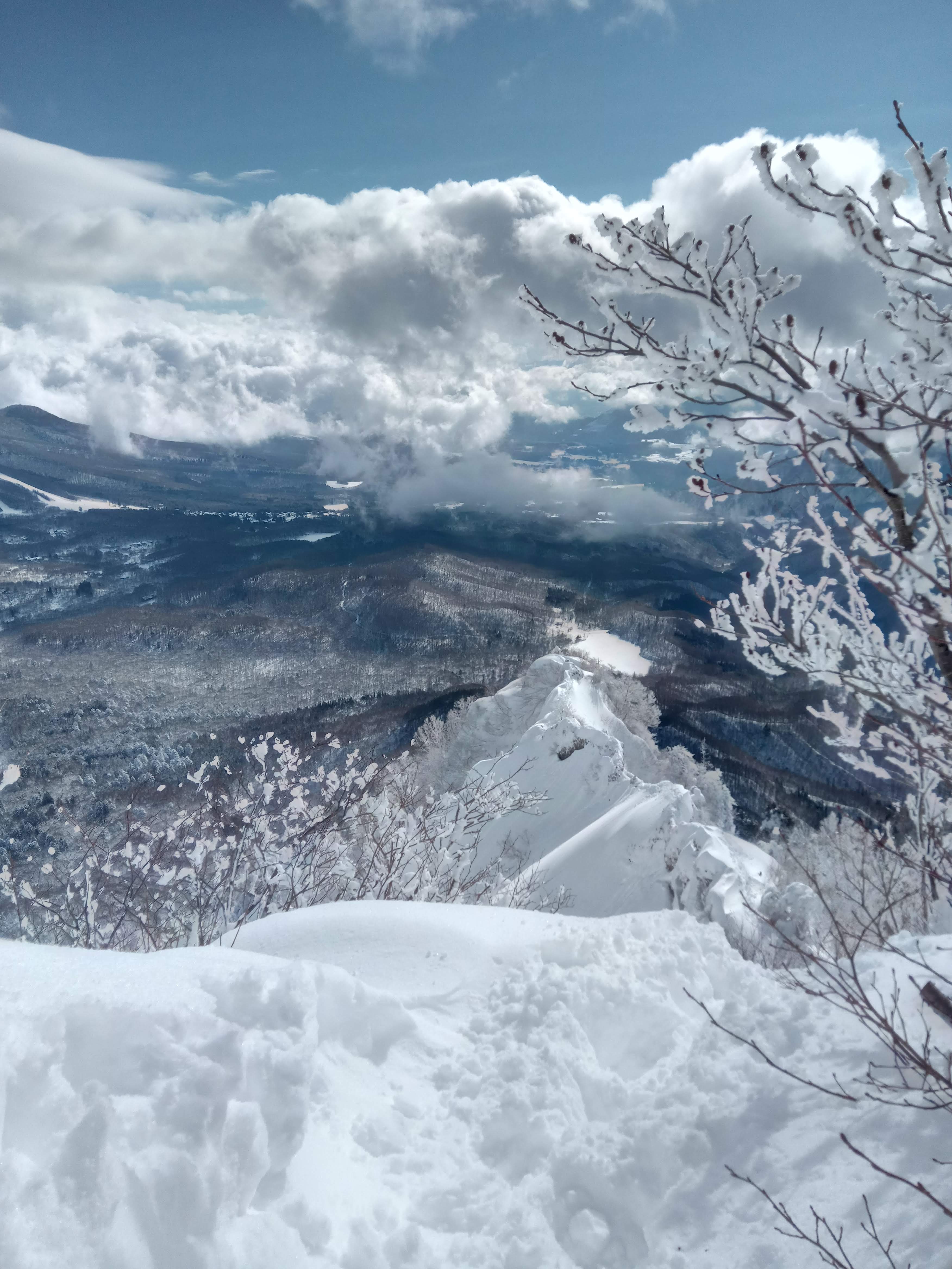 まだ時季が早く、雪が太っていないリッジは幅30㎝ほど。両側は