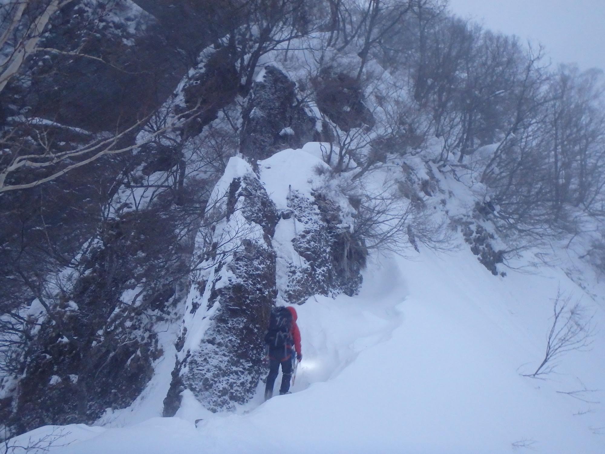 下山では、百間長屋手前の長いトラバース斜面が嫌な感じでした。