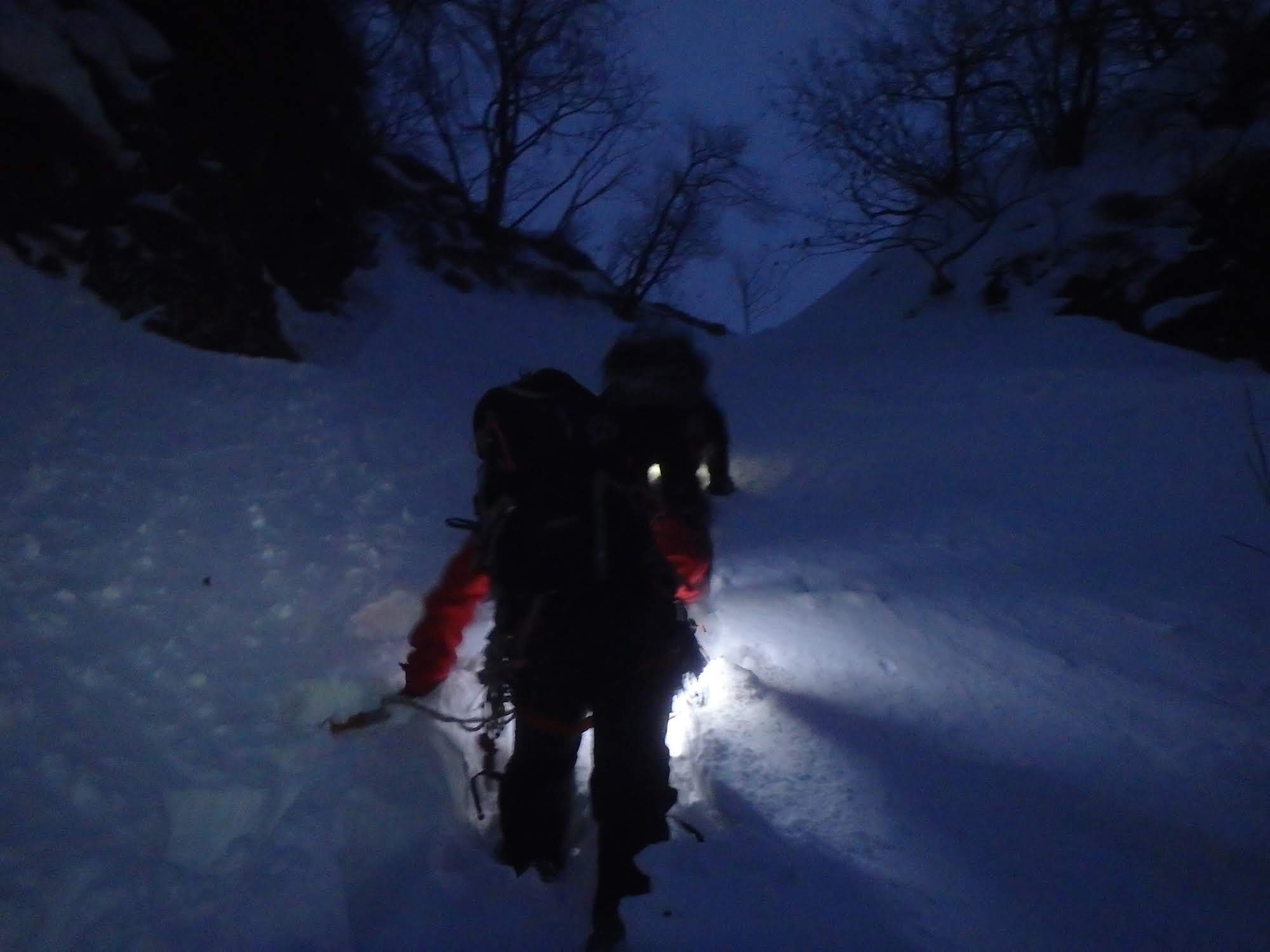 その時は雪渓の登り下りも、スプーンカットを上手く沢靴で捉えて、