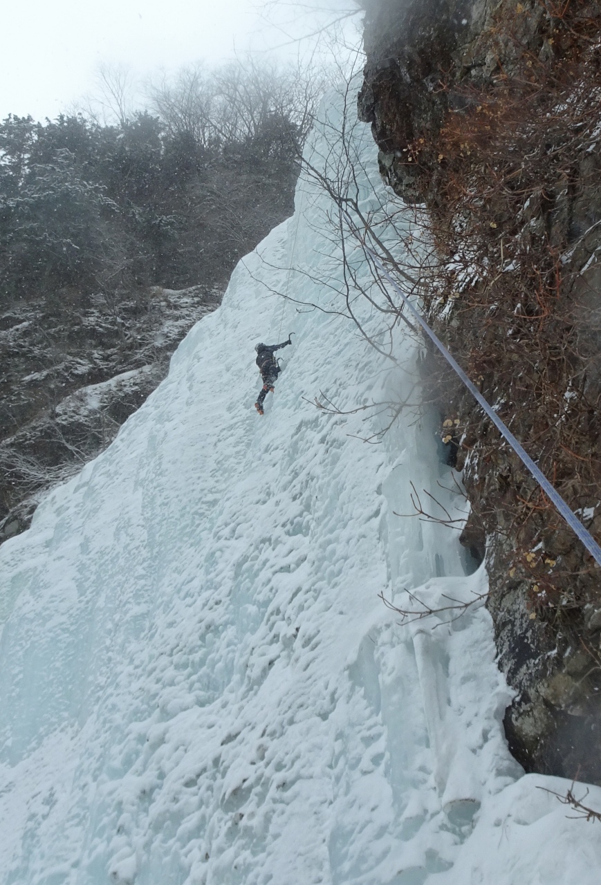 トップロープを張って、リードしたラインより少し左を登りましたが、こちらは下から上までしっかりした氷で快適でした。