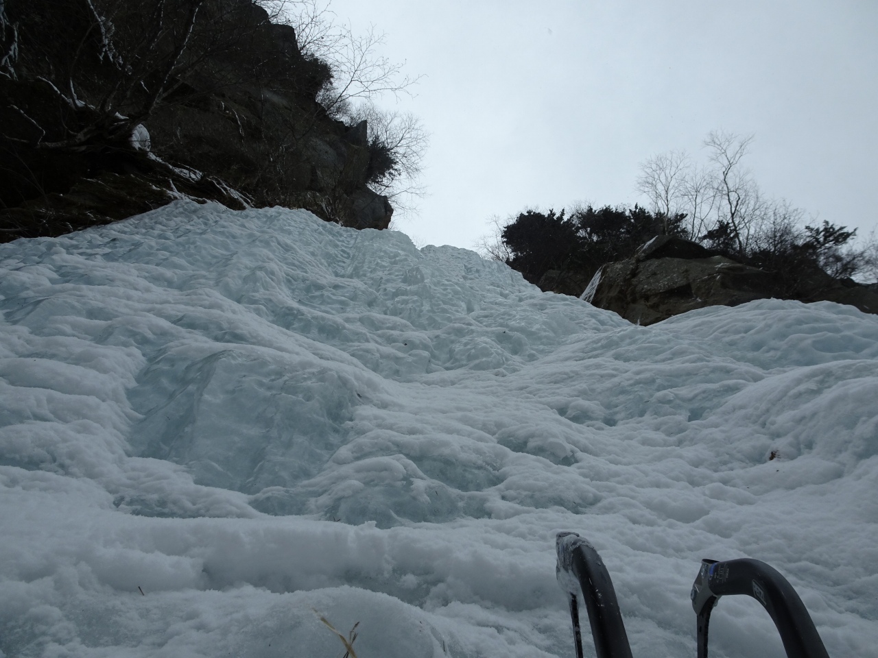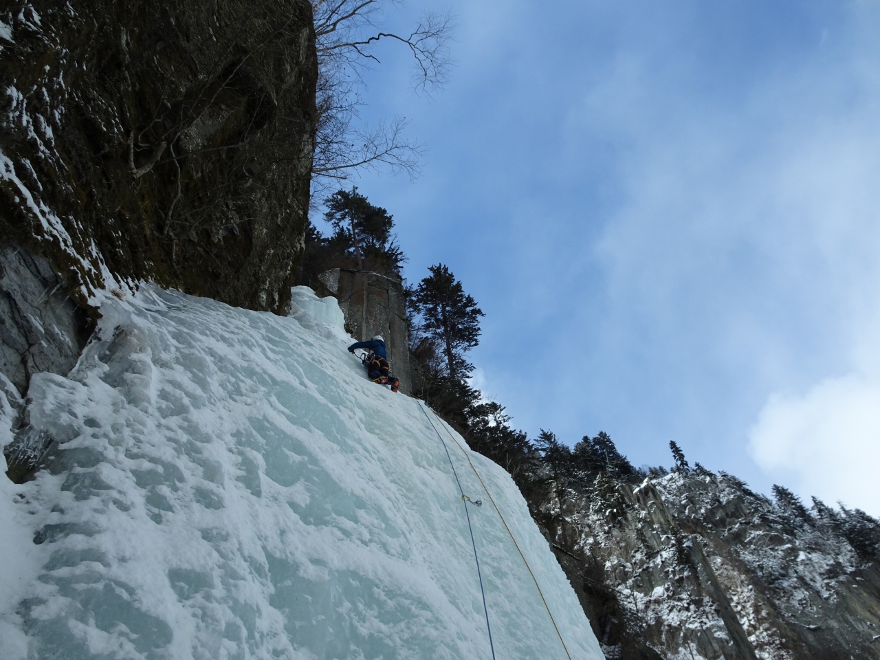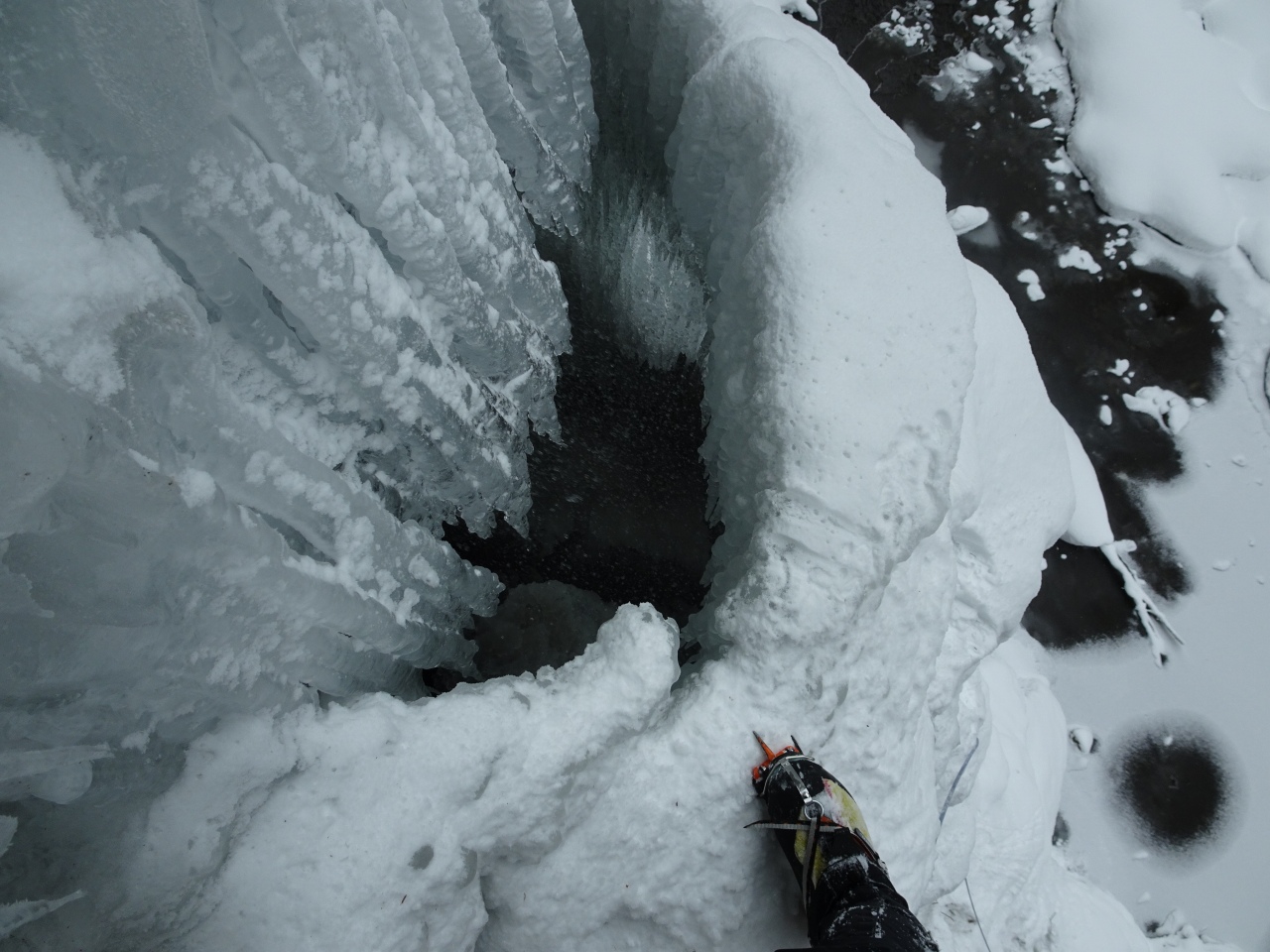 このライン、出だしの氷は硬くしっかりしてたものの、垂直部の下部がスカ氷交じりでヒヤヒヤでした。