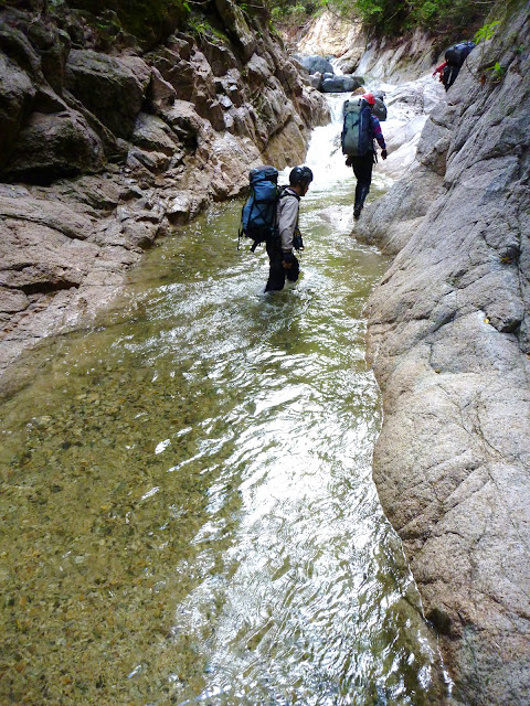 しばらくはゴーロを歩く。そのうちにナメや小さな釜を持った滝が出てきた。