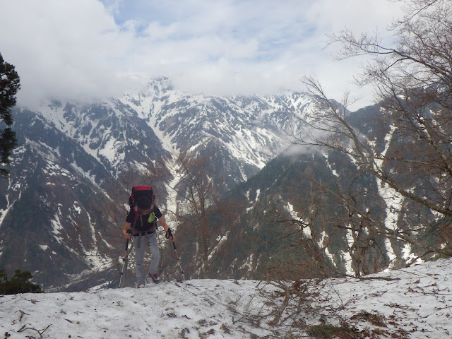 馬場島では青空の下、剱の峰々をバックに桜と新緑が広がり、ともて心地よい。『試練と憧れ』の石碑を横目に、早月尾根を登っていく。徐々に眼前に現れる北方稜線を望みながら、今後の計画にも胸を膨らませる。松木平では、右手に出てくる目印を辿っていると、二回ほど道路に下山させられそうになるので注意。