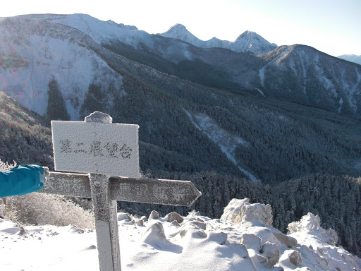 あたりを付けておいた2450mの手前で荷物をデポし、幕営適地を探す。・・・が、稜線付近の樹林帯なので意外に開けた部分がない。結局、第1展望台を過ぎた2450m地点に、登山道に半分はみ出る形で幕営となった。登山口で1Pにあったほかは、丸1日誰にも会わなかった。