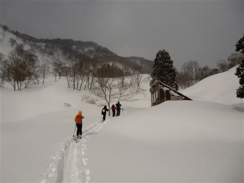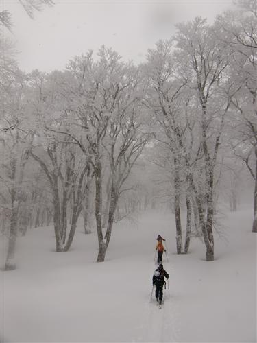 ・下山したらは20台以上の車が停まっていたが、先頭から2番手で、ぶなのパウダーの斜面に・雄叫びを残して楽しめた。
