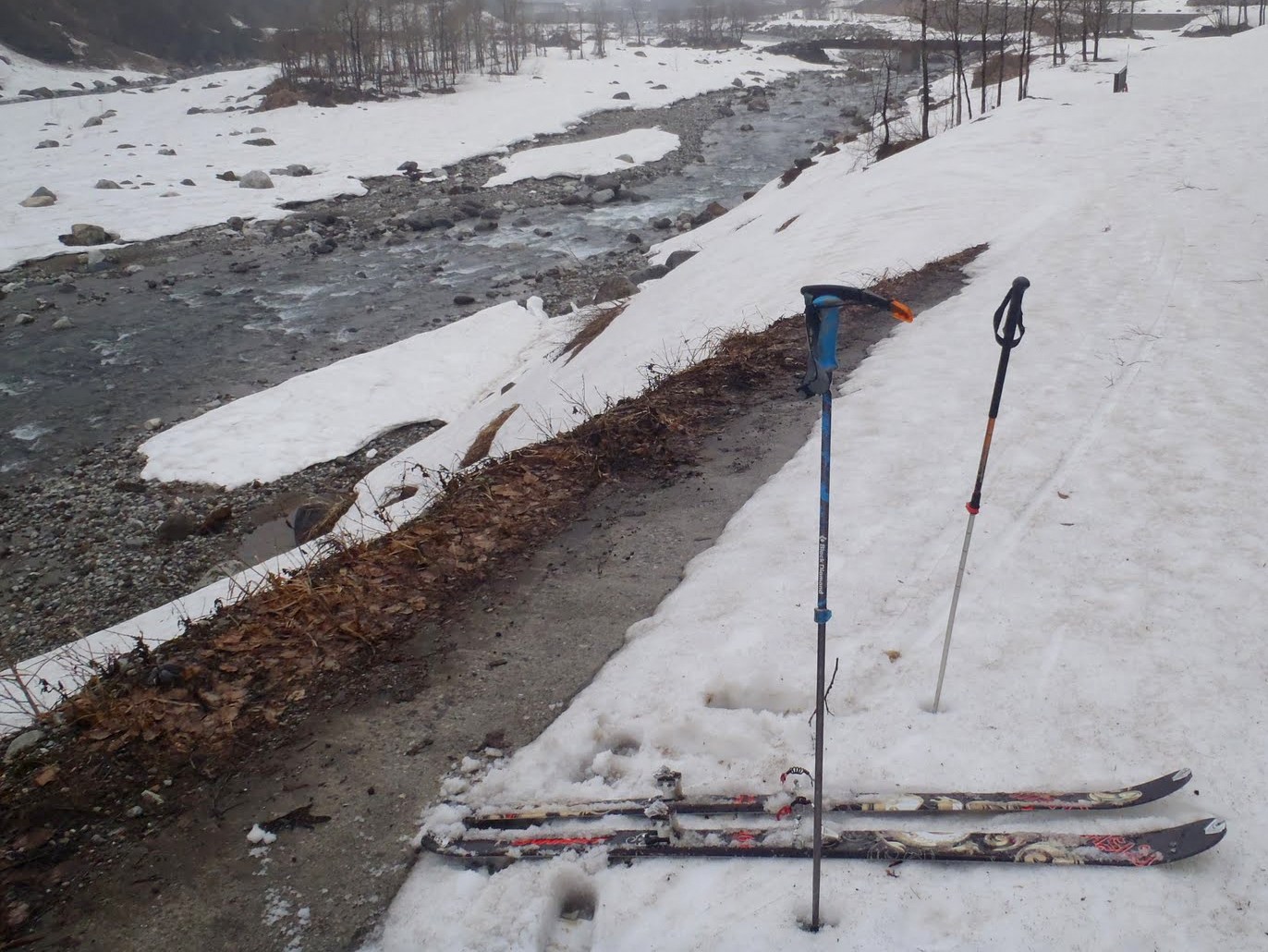 C1 7:10→1912m三角点北面の谷を滑降→湯川谷合流8:50→白岩堰堤下の橋9:20→天鳥トンネル10:55→立山駅12:05