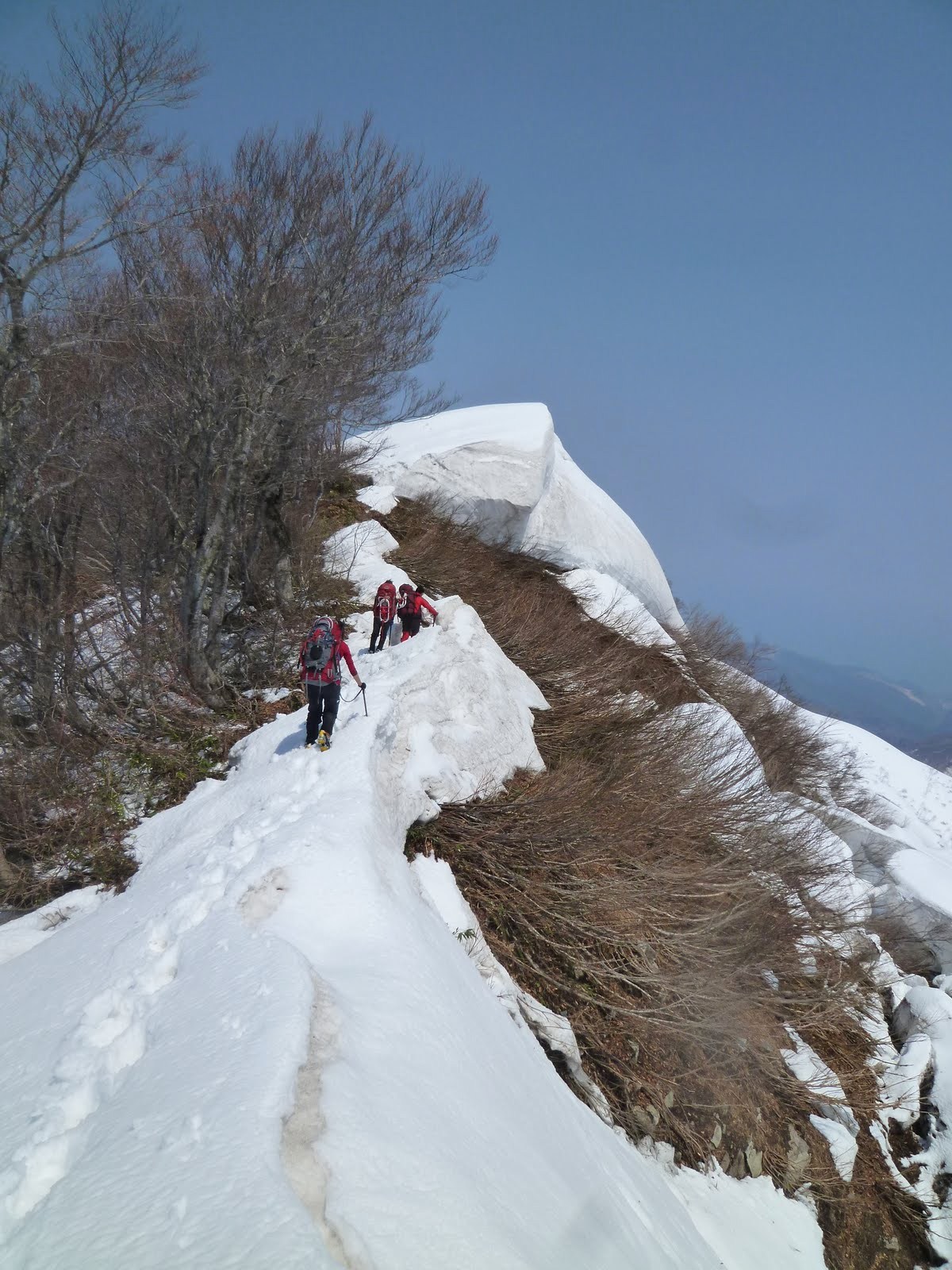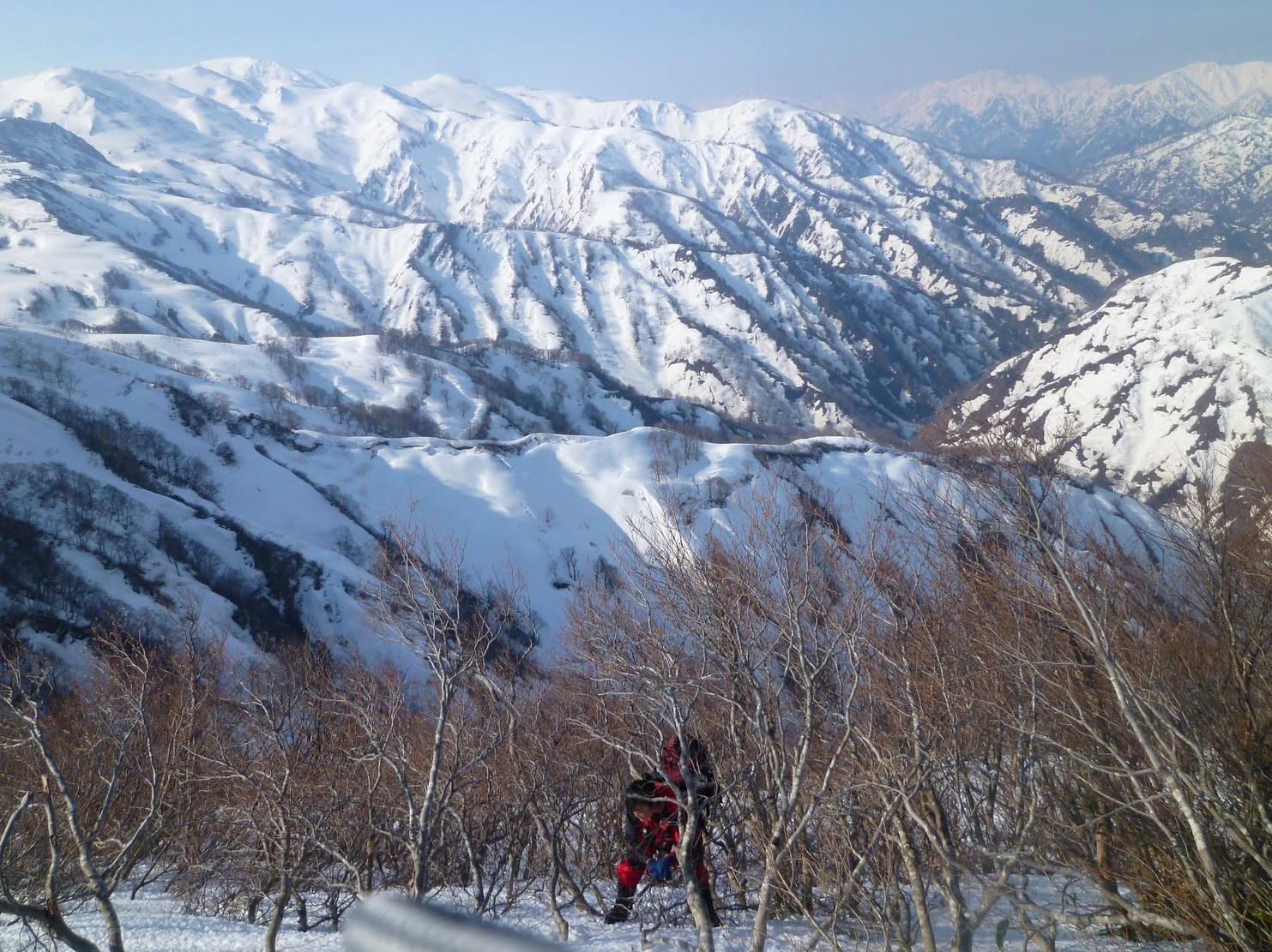 天気も良く無風。 白鳥山までは遠いがなんとか辿り着けそうだし、日本海へ抜けられるという事でモチベーション高し。最終日に何を食べるかという話が盛り上がる・・・