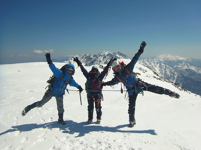 15分程を頂上で過ごしたあと降りることに。20分程で小屋に着きましたが、下りの方がいやらしいです。中崎尾根パーティーに声をかけた後、テントに戻りその晩は、T橋さんお勧めのO畑パスタを。雪山で連日、こんなに美味しい食事をいただけるなんて、N野さん、T橋さんに感謝します。