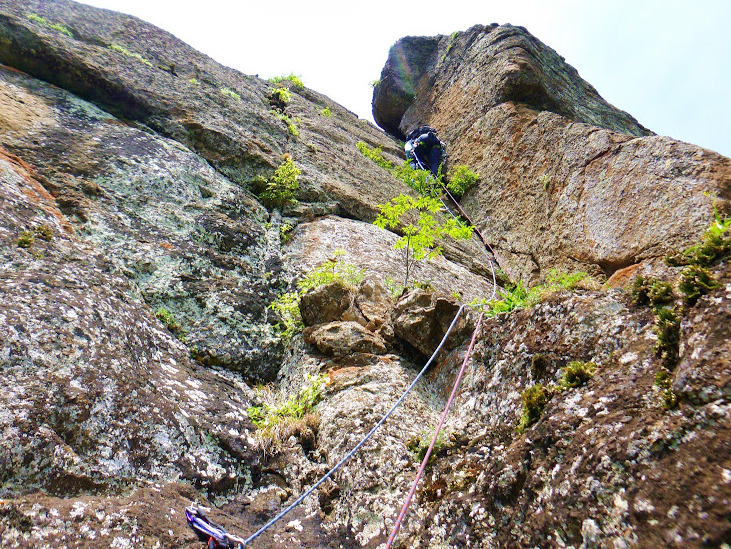・1~3ピッチ カンタンだが泥で滑る、岩がパクッと外れるなど悪い。2ピッチ目に立ったクラック(カンタンⅣ-)が出てくる。