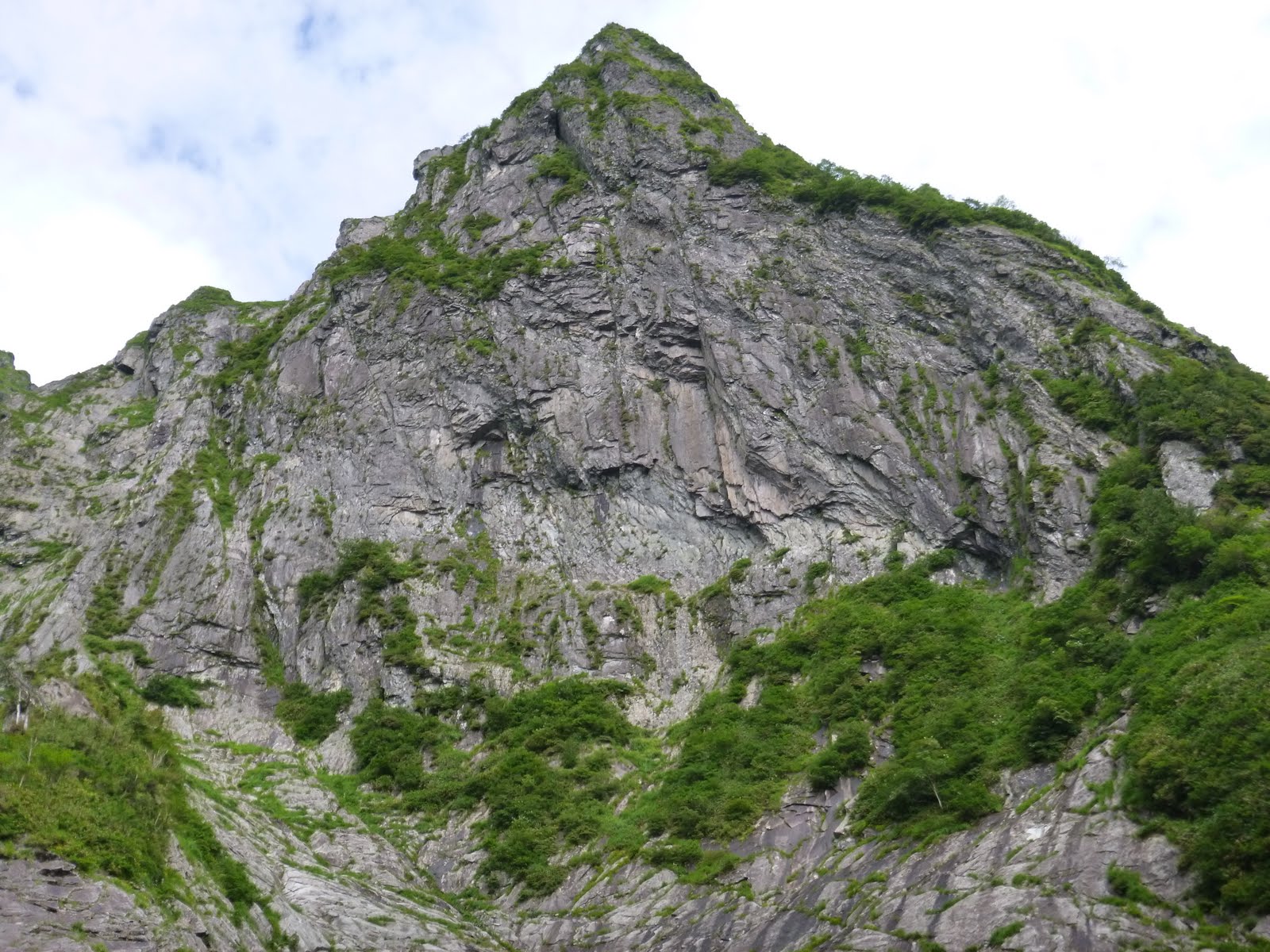 昨年と同じメンバーで恐るおそる取り付いてみると、懸念は良い意味で裏切られた。登攀ルートも下降路も、最近支点が整備されているようなのだ。ぐらつく腐ったピトンが減り、代わりに新品のリングボルトが増えている。大ハング周辺の核心部には、Petzlボルトさえ加わった。ここで固め取りしておけば、それ以外のピンは前進のみに使えるので、精神的にも肉体的にも負担が減る。脆い岩と深い笹藪は変わらないので、登攀者が増えている訳ではなさそうだ。