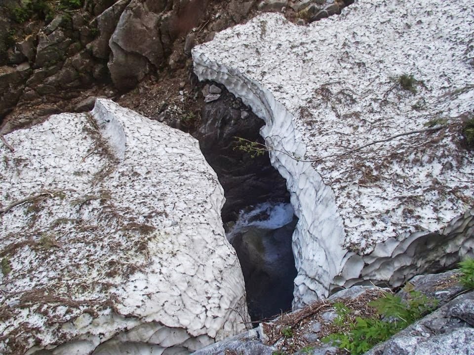 雪渓に乗っても斜度があるので、アイゼンピッケルなしではたぶん無理。