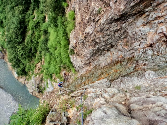 次のピッチは更に簡単。なんだか拍子抜けしてしまったので、ここで登攀を打ち切って下降する。脇にある灌木帯を使えばロープ不要。