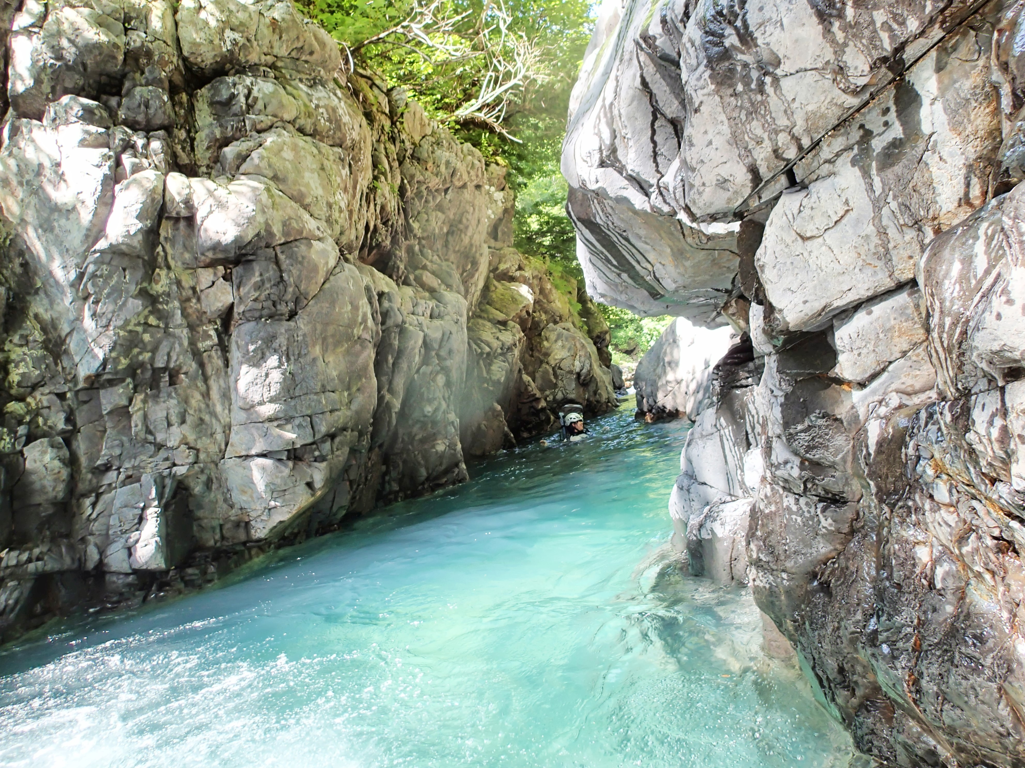 1635m付近からゴルジュ地形になり黒い岩の小滝が13個も連続する。しかし楽しく下降できる。