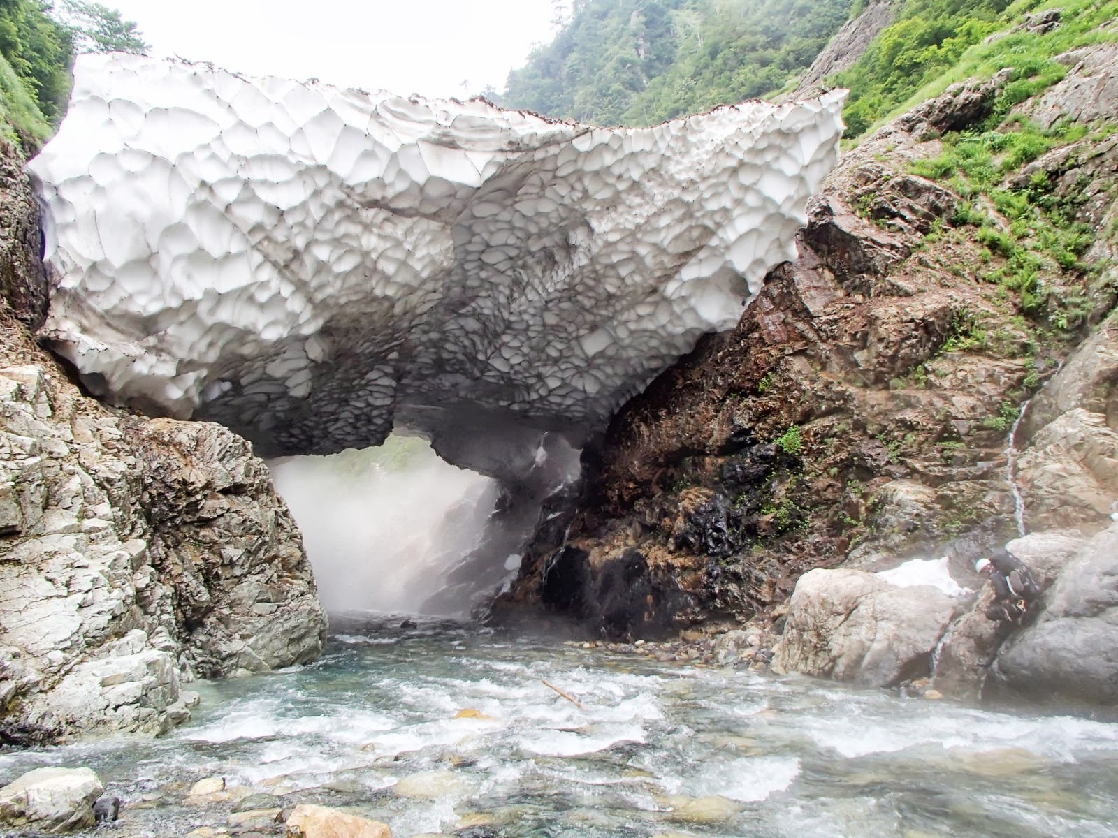 やがて沢は白い冷気に包まれ、シッケイガマワシで最初のスノーブリッジが登場。