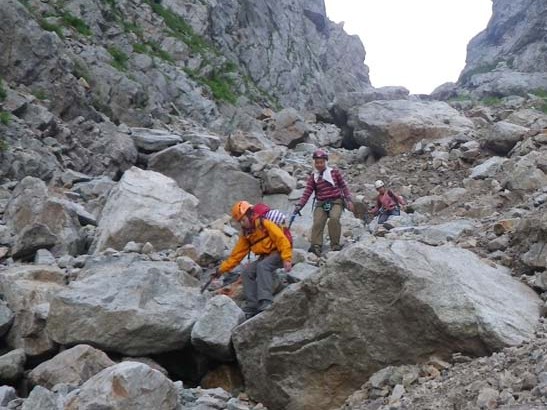 三ノ窓の雪渓の水は期待せず各自5リッター持ち上げる。ゆえに剣の登りでヒィヒィ。