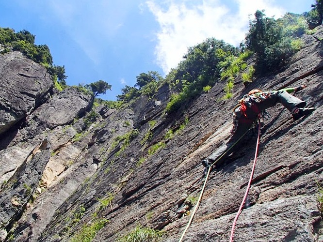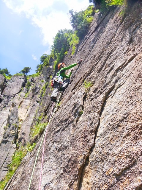 核心だぁ!S口くん、普通に歩くように登って行ったんで、Mと二人で所詮「9」だょなぁ~なぁーんて言ってたら、フォローMちゃんの呼吸が激しい。次っておいらの番・・死んでもチョンボしいなように、目前のカムを全て外してしまうが、外すめの瞬間にちょっとテンションかな?